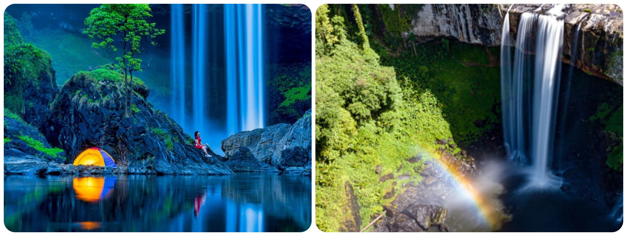 Tiếng nước đổ vang lên như một bản giao hưởng hùng tráng. Từ độ cao hơn 50m, dòng nước trắng xóa lao xuống, tung bọt và tạo nên một lớp sương mờ ảo như khói. Con thác đẹp đến mức tôi lặng người. Không một bức ảnh nào có thể diễn tả trọn vẹn vẻ đẹp ấy, một vẻ đẹp vừa dữ dội vừa mềm mại, vừa hoang dã vừa tinh khôi. Đứng dưới chân thác, hơi nước phả vào mặt mát lạnh. Cầu vồng hiện lên trong làn sương, mờ ảo như một phép lạ. Tôi đưa tay chạm vào những giọt nước lạnh buốt, lòng bỗng bình yên đến lạ.