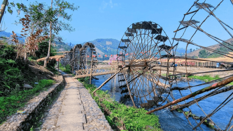 Na Khuong Water Canal Nestled next to the gentle stream flowing through the rice valley is the Na Khuong water canal system, a unique folk mechanical wonder of the people of Binh Lu commune. The giant "water wheels" are made entirely from bamboo and forest wood, persistently spinning to bring water from deep to irrigate the soaring terraced fields above. Cool water pours from the bamboo trough into the rice furrows, reflecting the ancient trees and the peaceful daily life of the indigenous people. The streams of water are not only a symbol of the wisdom of labor but also the perfect "background" for artistic photos capturing the beauty of labor blended with pristine nature.