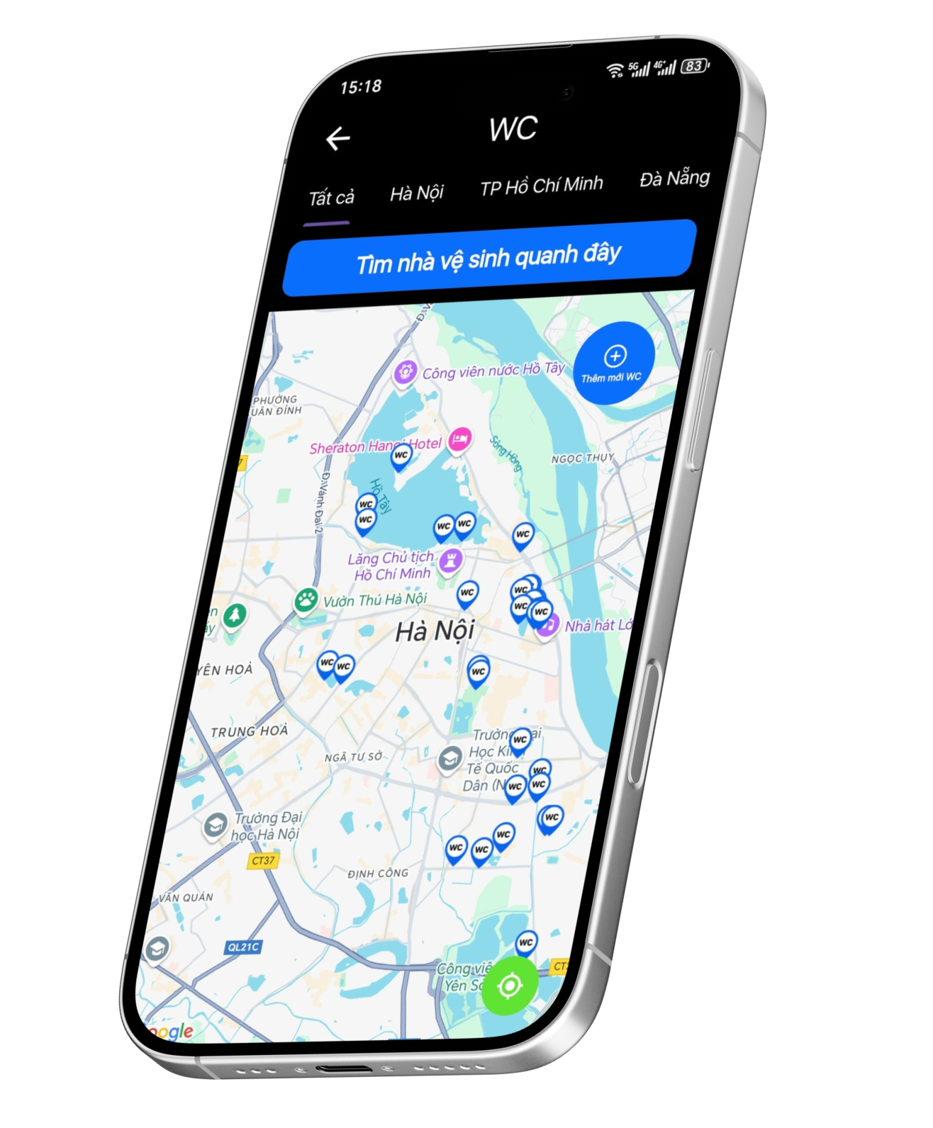 Visitors can "Search for restrooms around here" according to your coordinates or search for restrooms by province and city.