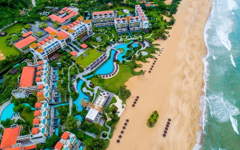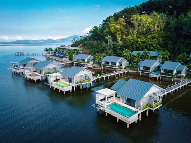 Vedana Lagoon Resort & Spa (Phú Lộc, Huế - cách trung tâm 40km): Vedana Lagoon Resort & Spa (Phú Lộc, Huế) nằm giữa đầm Lập An thơ mộng, cách trung tâm thành phố khoảng 40km, là nơi lý tưởng để hòa mình vào thiên nhiên yên bình. Khu nghỉ dưỡng nổi tiếng với những căn villa trên mặt nước, dịch vụ spa cao cấp và không gian tĩnh lặng đầy thư thái. Giá phòng dao động từ 3.000.000 - 6.000.000 VNĐ/đêm