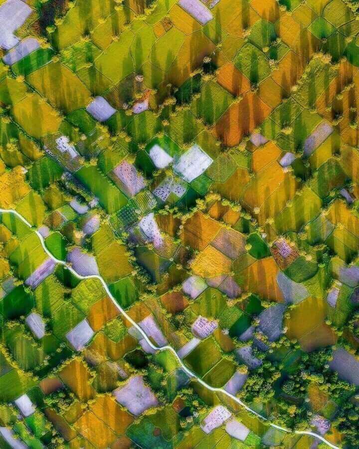 Điều này khiến cho khắp cánh đồng khi vào mùa thu hoạch sẽ có những mảng màu khác nhau,từ sắc xanh mơn mởn của lúa non đến màu vàng nhạt của lúa vừa trổ hạt,có thửa lại rực rỡ sắc lúa chín vào mùa gặt,xen lẫn màu nâu sậm của những những gốc rạ chơ vơ sau thu hoạch.