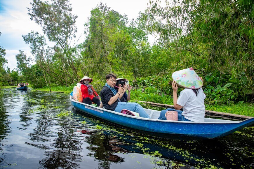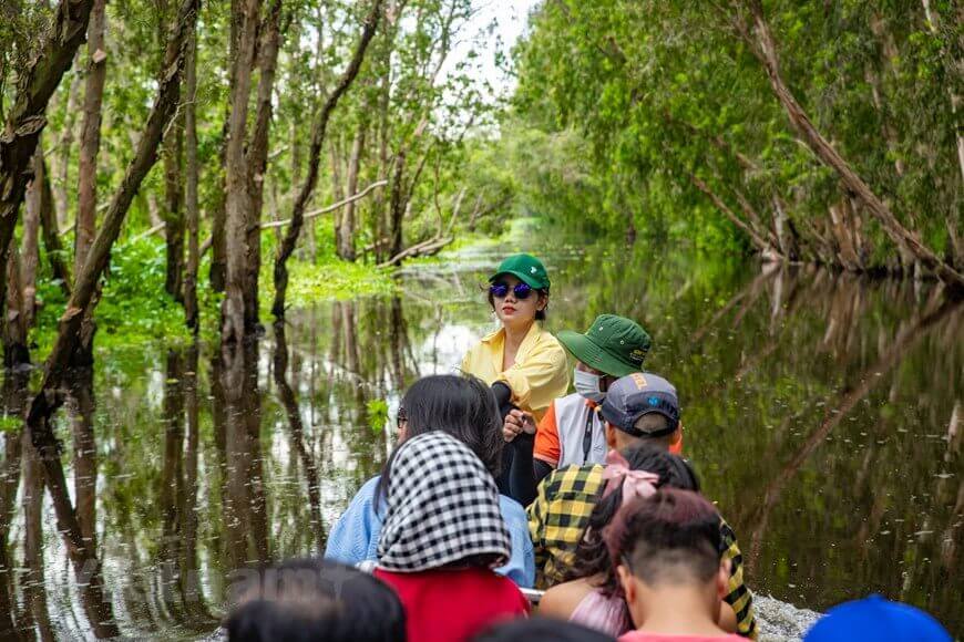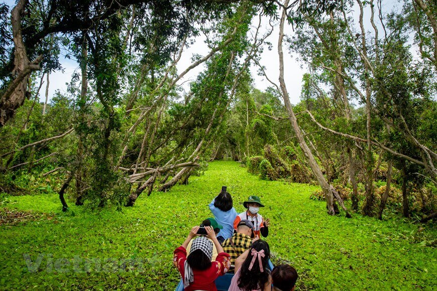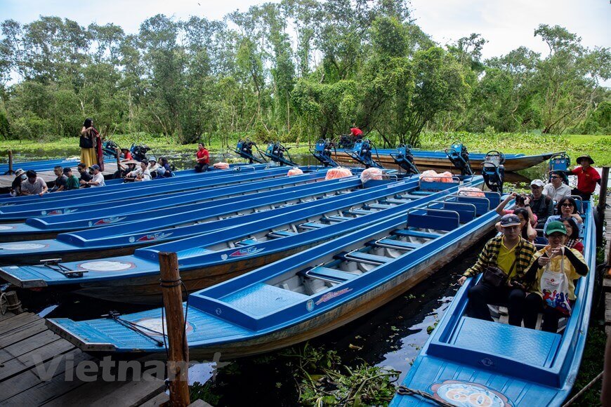 Du khách tới tham quan sẽ cảm thấy choáng ngợp trước rừng tràm mênh mông và có cơ hội khám phá hệ sinh thái rừng ngập nước đặc trưng phía Tây sông Hậu với nhiều loài động thực vật đa dạng,quý hiếm. (Ảnh: Hoài Nam/Vietnam+)