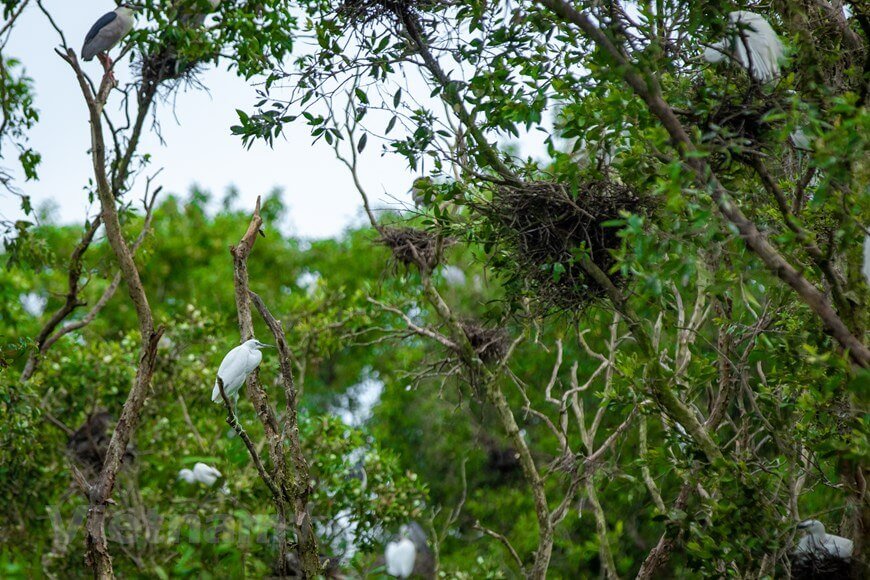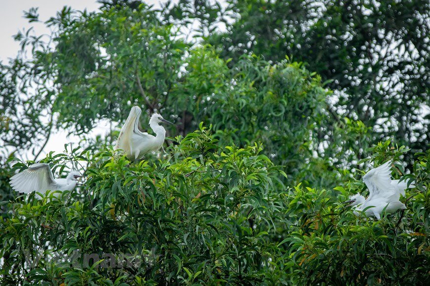 Bên cạnh đó còn có ‘lãnh địa’ của loài cò,vạc. Du khách sẽ được hòa mình vào 'bản giao hưởng' thiên nhiên từ tiếng kêu của cò trắng,cò xám và vạc. (Ảnh: Hoài Nam/Vietnam+)