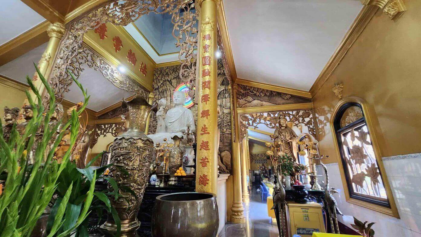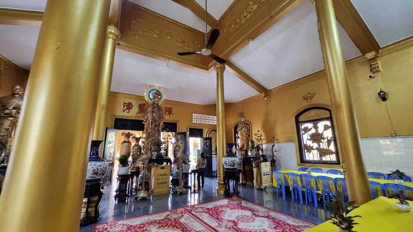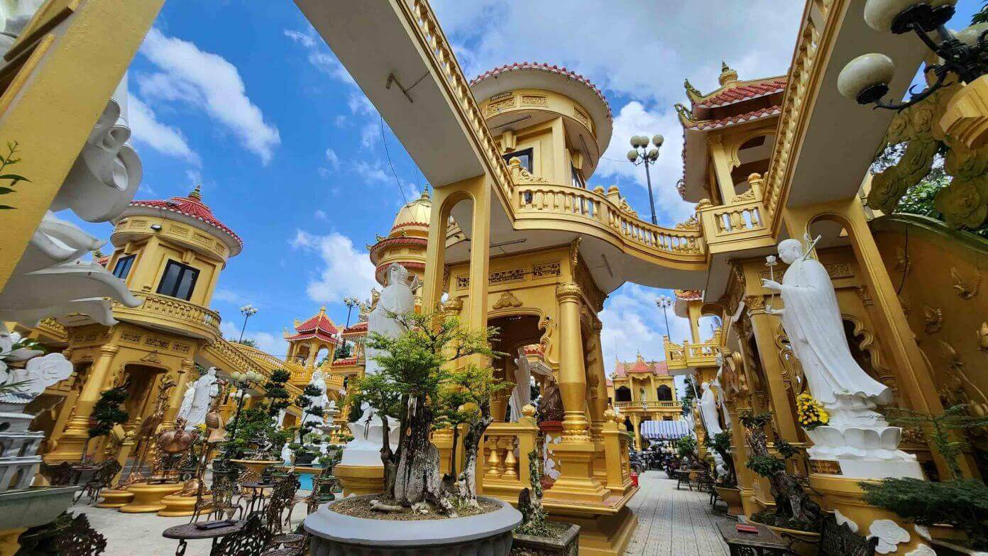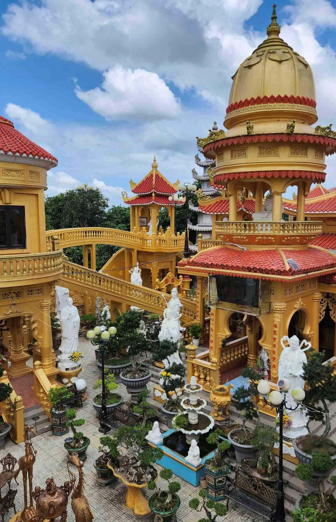Đến với chùa Phước Thành,du khách sẽ không khỏi ngỡ ngàng với sắc vàng bao phủ cả ngôi chùa. Ảnh: T.T
