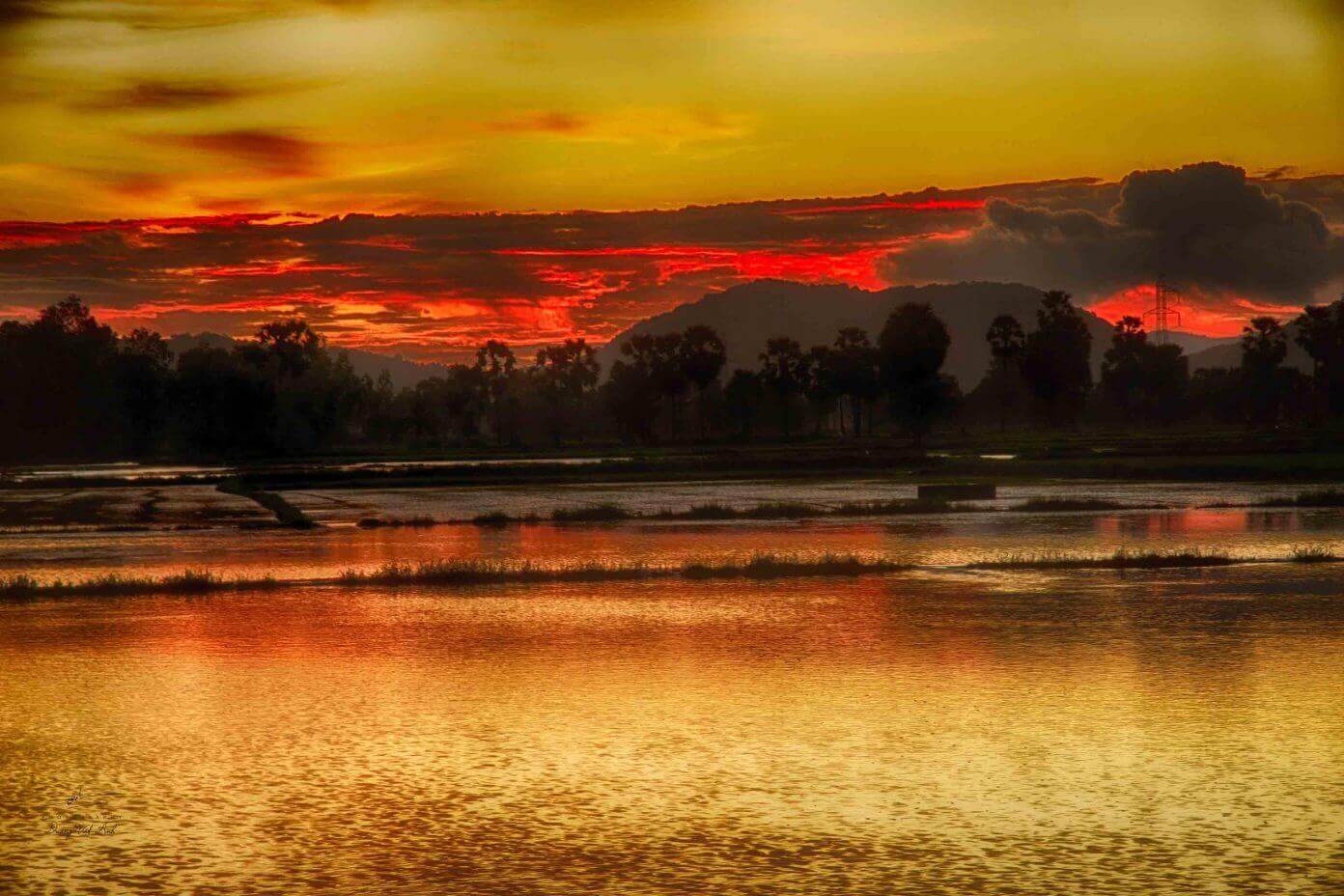 Nước tràn vào đồng ruộng,kênh rạch… hòa hợp với những rặng cây,rặng núi tạo nên cảnh sắc thơ mộng ở vùng Bảy Núi. Ảnh: Dương Việt Anh