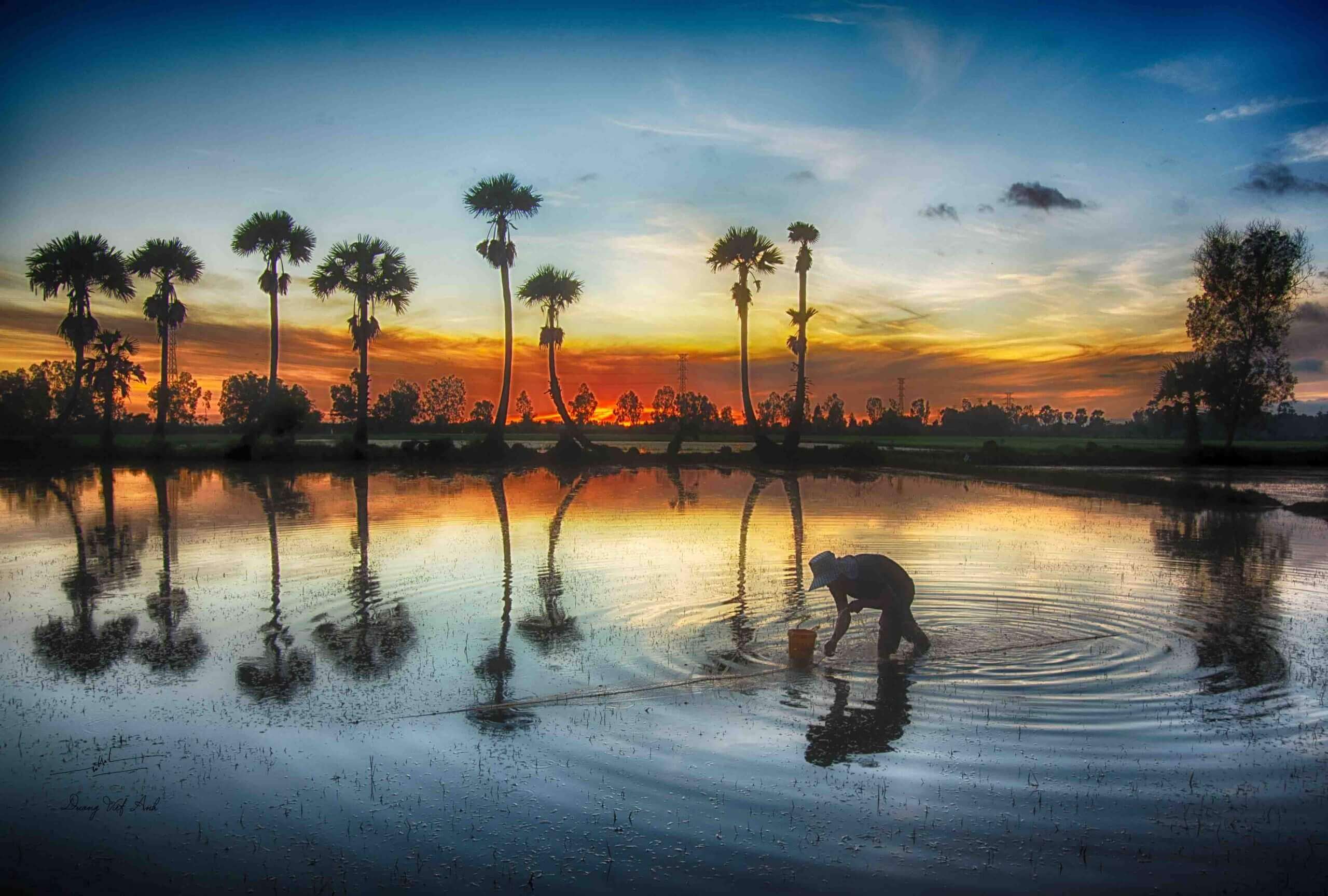 Vào mùa này,những hàng thốt nốt hay đồng ruộng ngập nước cũng trở thành nguồn cảm hứng cho nhiều du khách và nhiếp ảnh gia về sáng tác ảnh. Ảnh: Dương Việt Anh