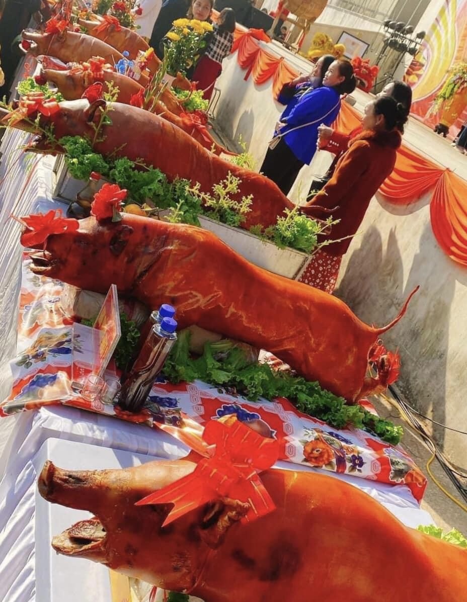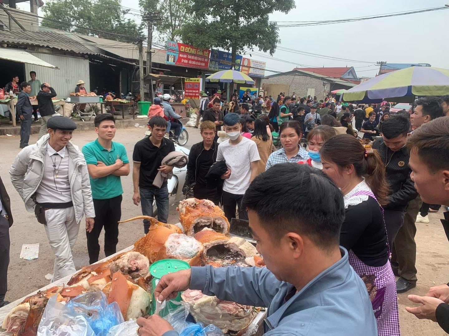 Từ chiều 20-2,người dân ở các xã đã đổ về chợ tình Thác Lười để mua bán,vui chơi,ăn uống (món phổ biến là heo quay)