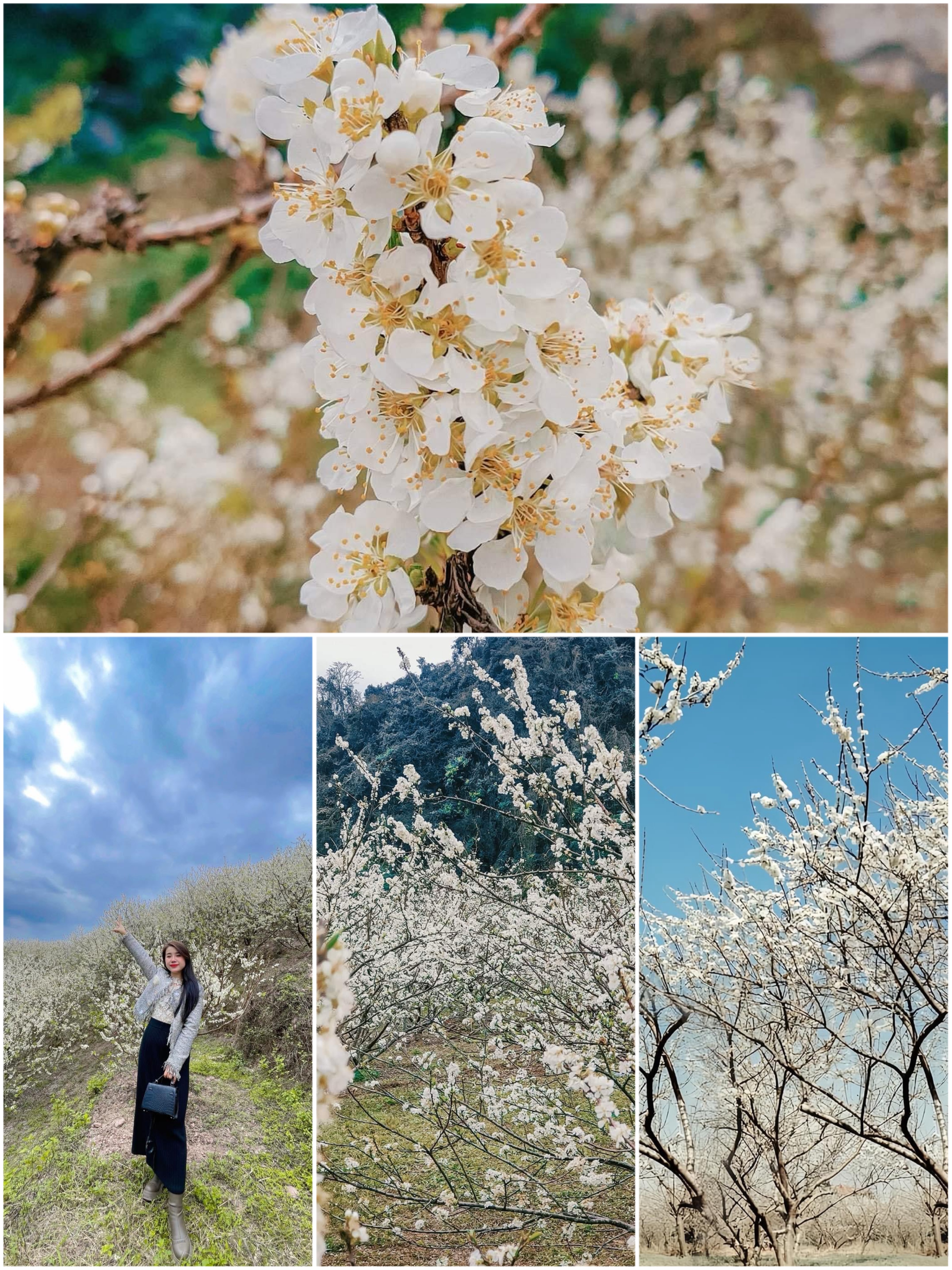 Bên trên đồi là bạt ngàn hoa mận trắng. Ảnh: PHẠM TRANG