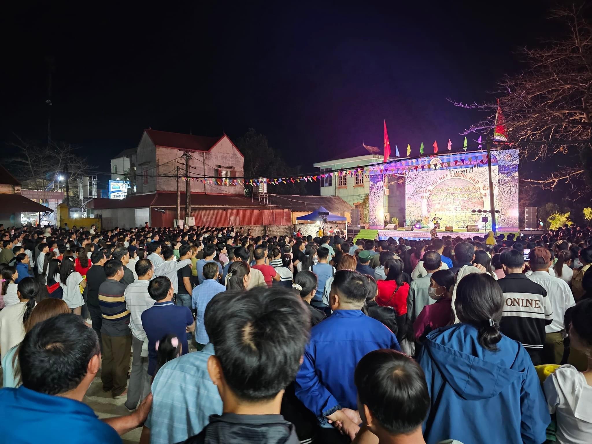 Hội thi hát sloong hao tại trung tâm xã Tân Sơn tối 20-2,hàng nghìn người đổ về xem