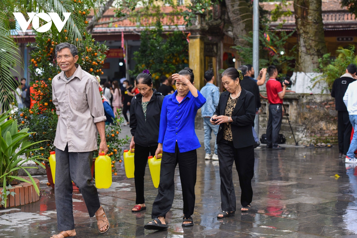 Bà Nguyễn Thị Phấn ở thị xã Thuận Thành cùng với gia đình mang chiếc can đựng tới để xin nước về thắp hương hoặc sử dụng với mong muốn năm mới làm ăn thuận lợi.