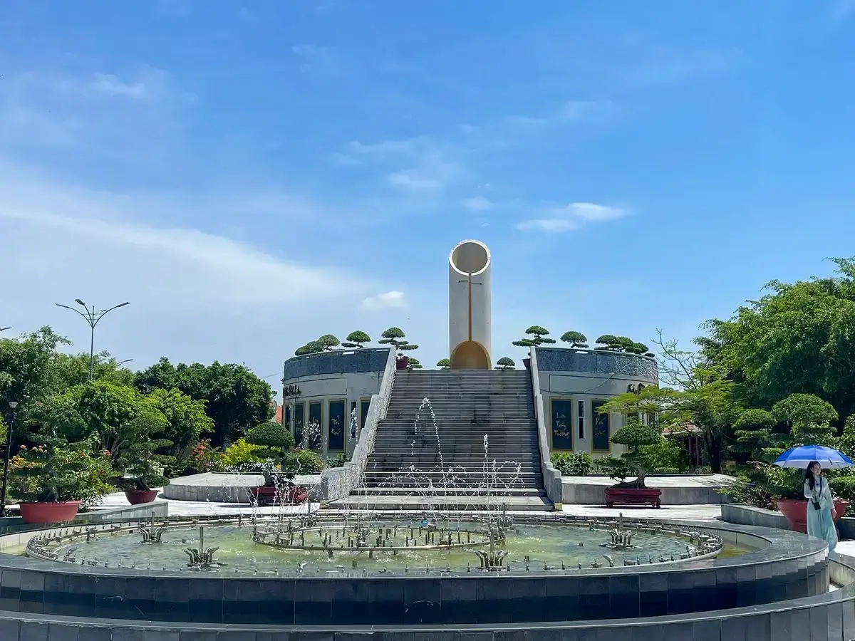 Hoa hậu Trái đất 2018 Nguyễn Phương Khánh,đại sứ của chương trình “Cùng ngư dân thắp sáng đèn trên biển” đến thăm khu lưu niệm trong chuyến về Bạc Liêu gần đây. Ảnh: CHÂU ANH
