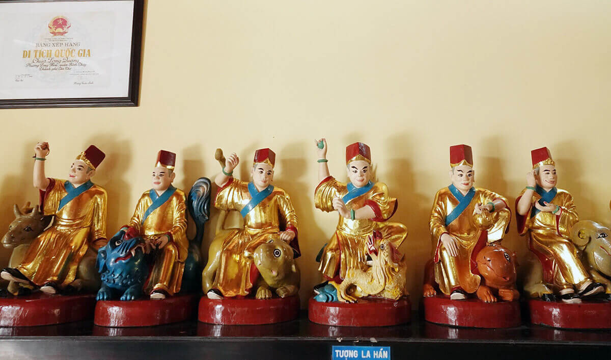 Chùa Long Quang (phường Long Hòa,quận Bình Thủy,TP Cần Thơ) là di tích quốc gia đang sở hữu và thờ cúng khoảng 50 tượng Phật bằng gỗ rất có giá trị,trong đó nổi bật nhất là bộ 18 vị La Hán.