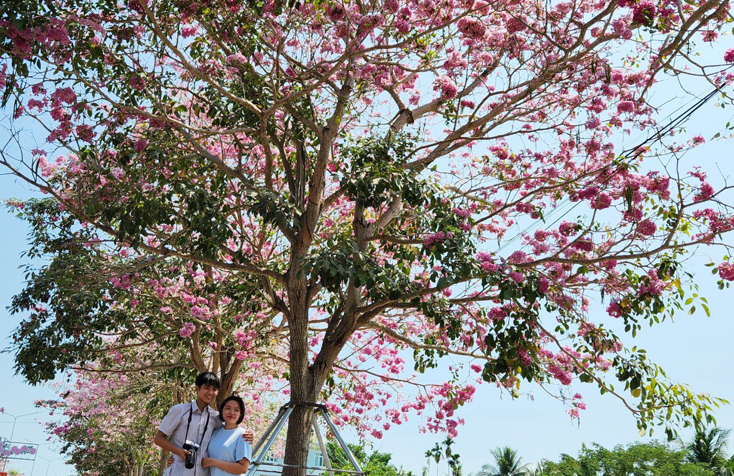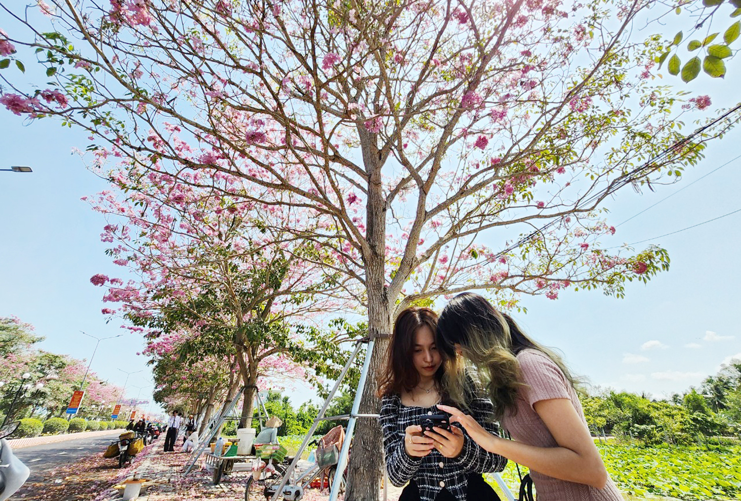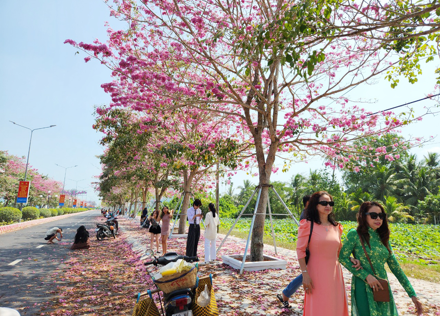 Khách tham quan,chụp ảnh nhiều nhất tại đây là các bạn trẻ. Nhiều bạn trẻ ở miền Tây muốn lưu lại những khoảnh khắc đặc biệt tại cung đường hoa kèn hồng tuyệt đẹp mà không phải đi xa.