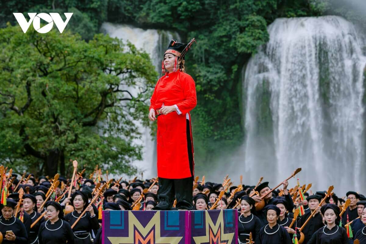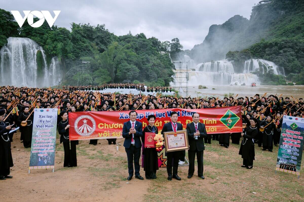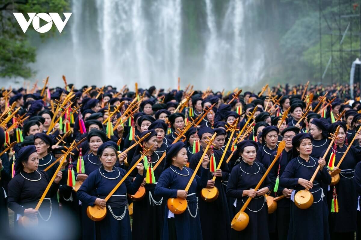 Bên dòng thác Bản Giốc hùng vĩ,1.000 người gồm các nghệ nhân,người yêu nhạc dân tộc,học sinh,sinh viên… đủ lứa tuổi trong những bộ trang phục truyền thống Tày- Nùng đã cùng biểu diễn chương trình hát then đàn tính mang chủ đề “Cội nguồn và Bản sắc then tính Cao Bằng".