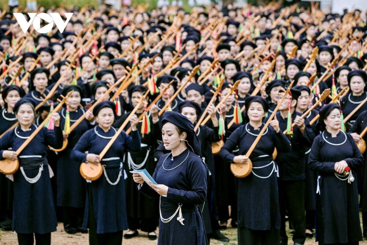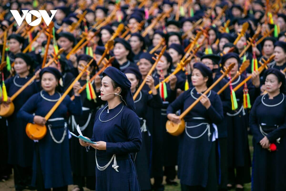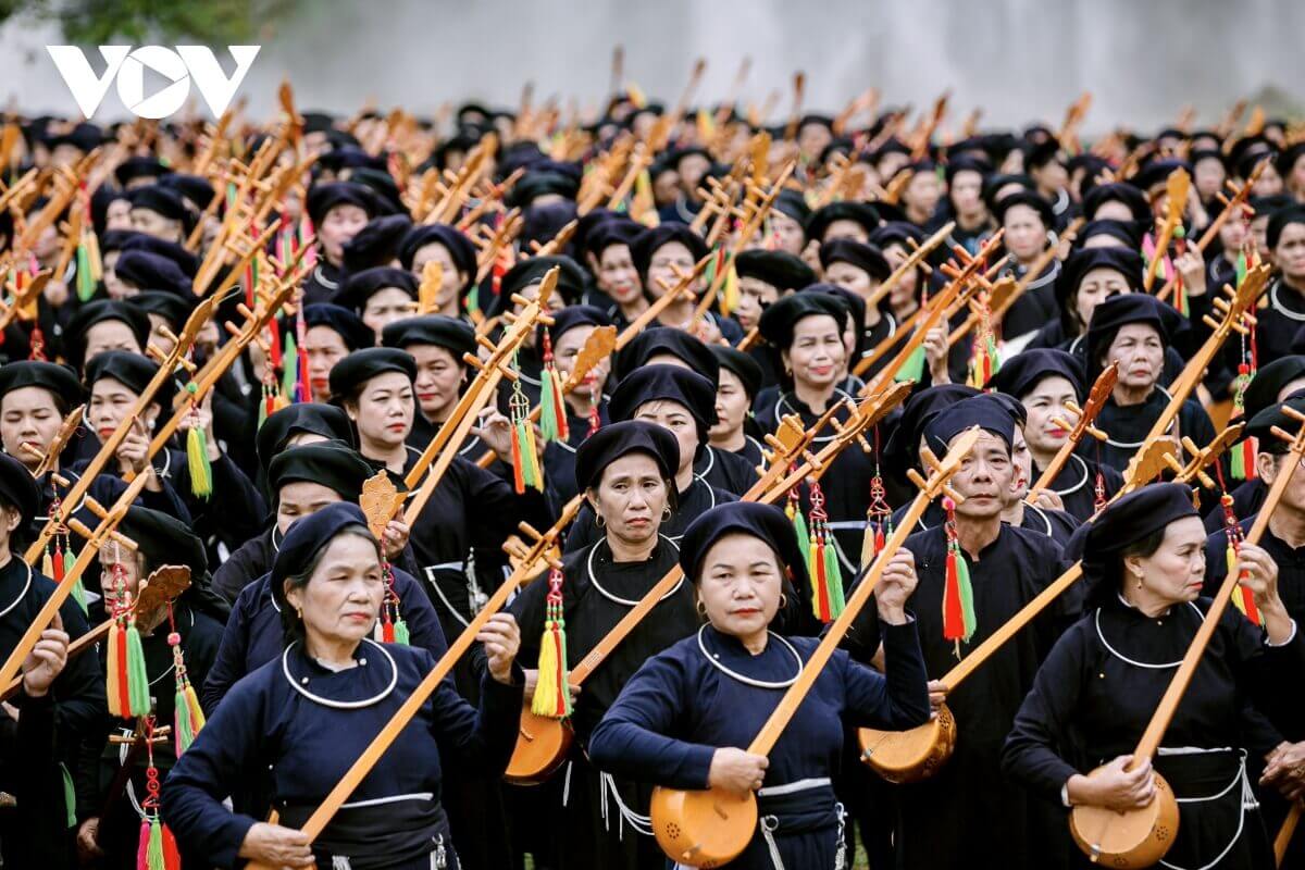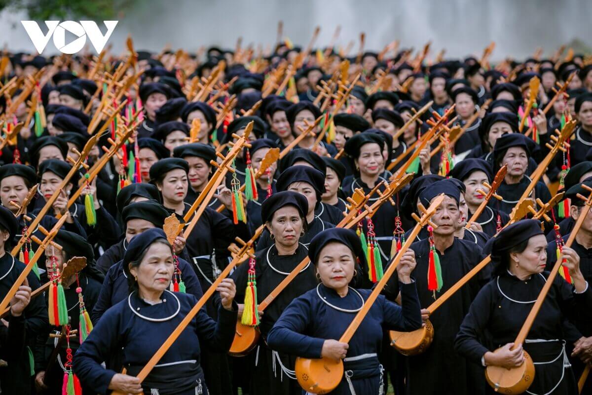 Bên dòng thác Bản Giốc hùng vĩ,1.000 người gồm các nghệ nhân,người yêu nhạc dân tộc,học sinh,sinh viên… đủ lứa tuổi trong những bộ trang phục truyền thống Tày- Nùng đã cùng biểu diễn chương trình hát then đàn tính mang chủ đề “Cội nguồn và Bản sắc then tính Cao Bằng".