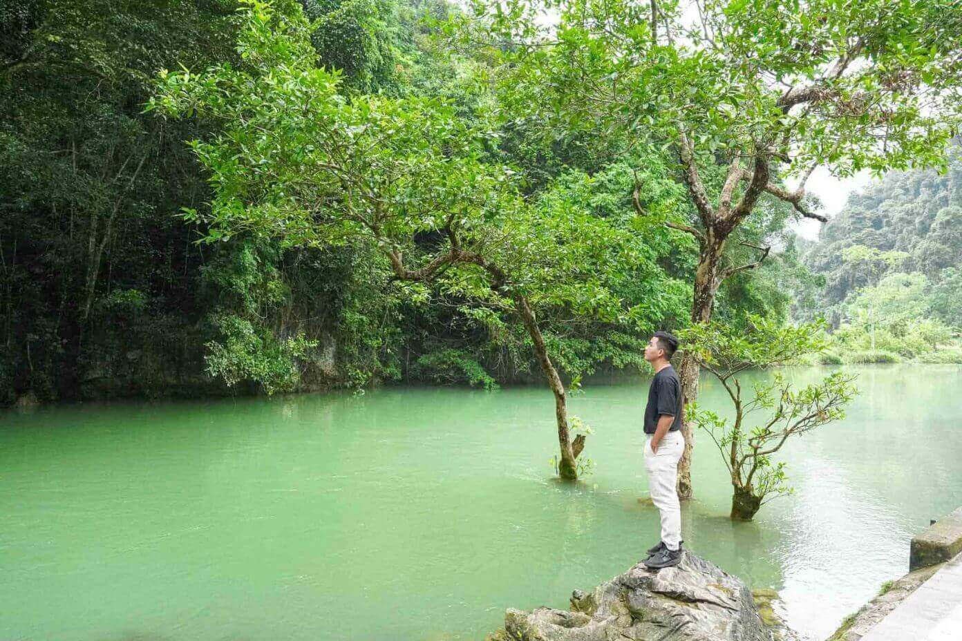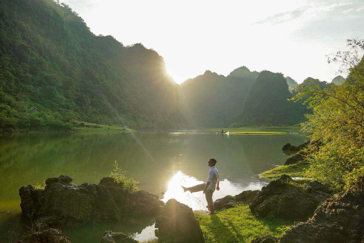 Anh Tính tiếp tục đến hồ Bản Viết tầm đầu giờ chiều,hồ cách thác Bản Giốc 18km. Đây là hồ nước nhân tạo rộng 5ha,nằm lọt thỏm giữa núi rừng xanh biếc. Anh Tính gợi ý du khách nên đến hồ vào sáng sớm để đỡ mệt vì đường đến hồ khá gồ ghề. Hồ đẹp nhất vào mùa Thu vì lúc này lá cây chuyển sang màu đỏ.