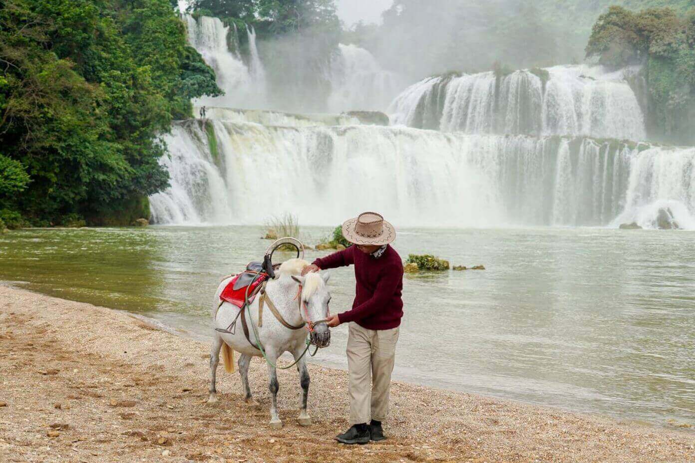 Tầm 10:00 giờ,anh Tính có mặt ở thác Bản Giốc,cách trung tâm thành phố Cao Bằng tầm 90km,thuộc xã Đàm Thủy,huyện Trùng Khánh nằm ngay tuyến biên giới Trung – Việt. Vì vậy,phần thác chính đang được Việt Nam và Trung Quốc cùng khai thác du lịch.