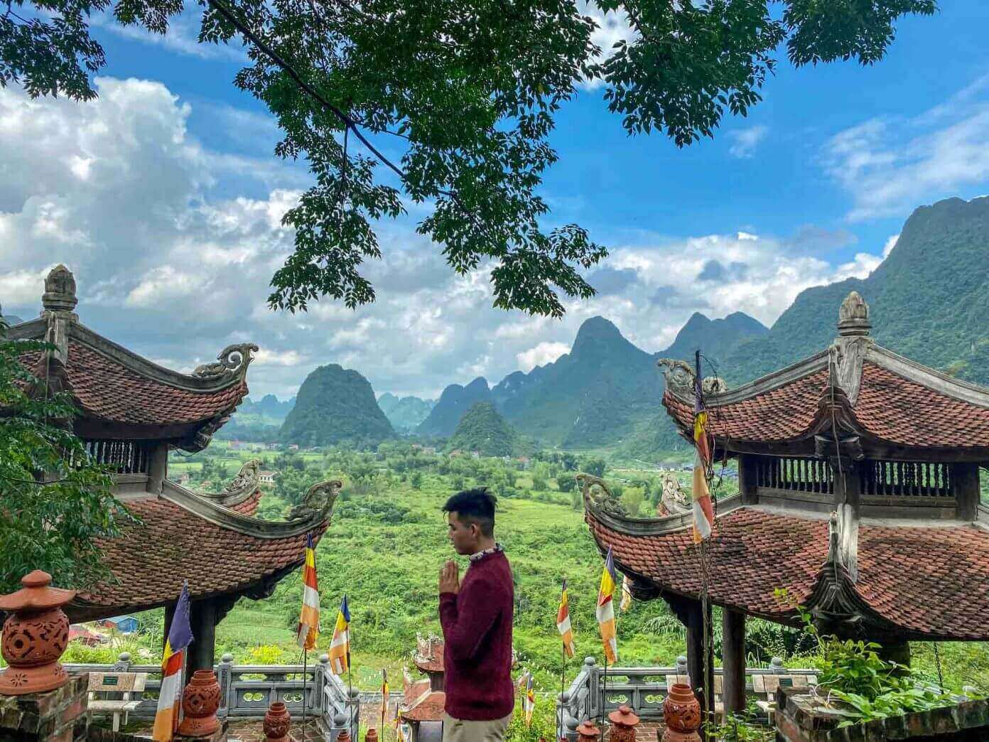 Nằm cách thác Bản Giốc tầm 700m là chùa Phật Tích Trúc Lâm. Chùa tựa lưng vào núi Phia Nhằn. Đường lên khúc khuỷu,quanh co. Để hành trình lên chùa thuận tiện,du khách nên mang giày thể thao hay giày bệt. Từ trên chùa du khách có thể phóng tầm mắt ra xa,có thể nhìn thấy những dòng thác tung bọt trắng xóa của thác Bản Giốc.