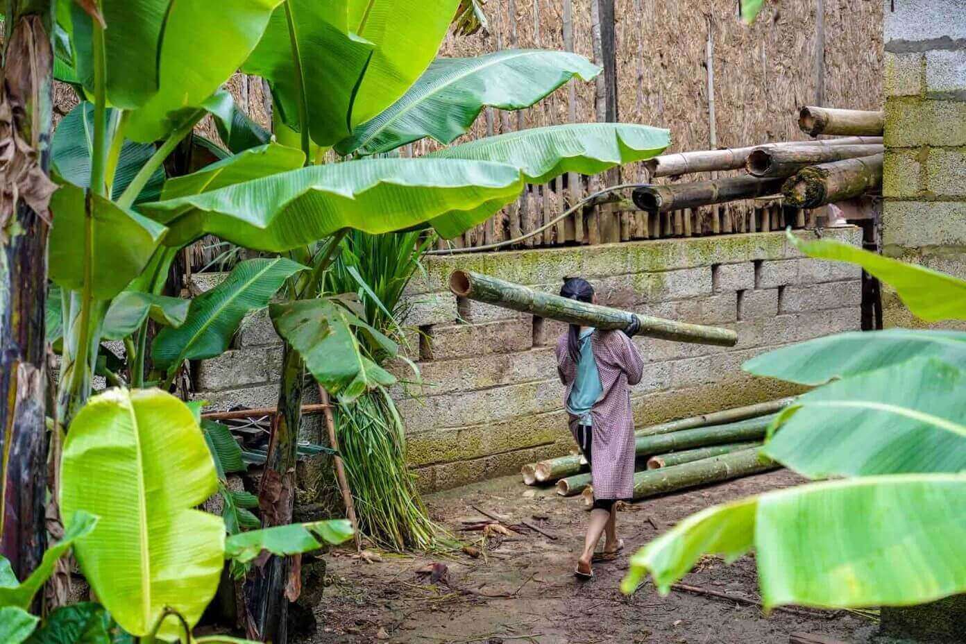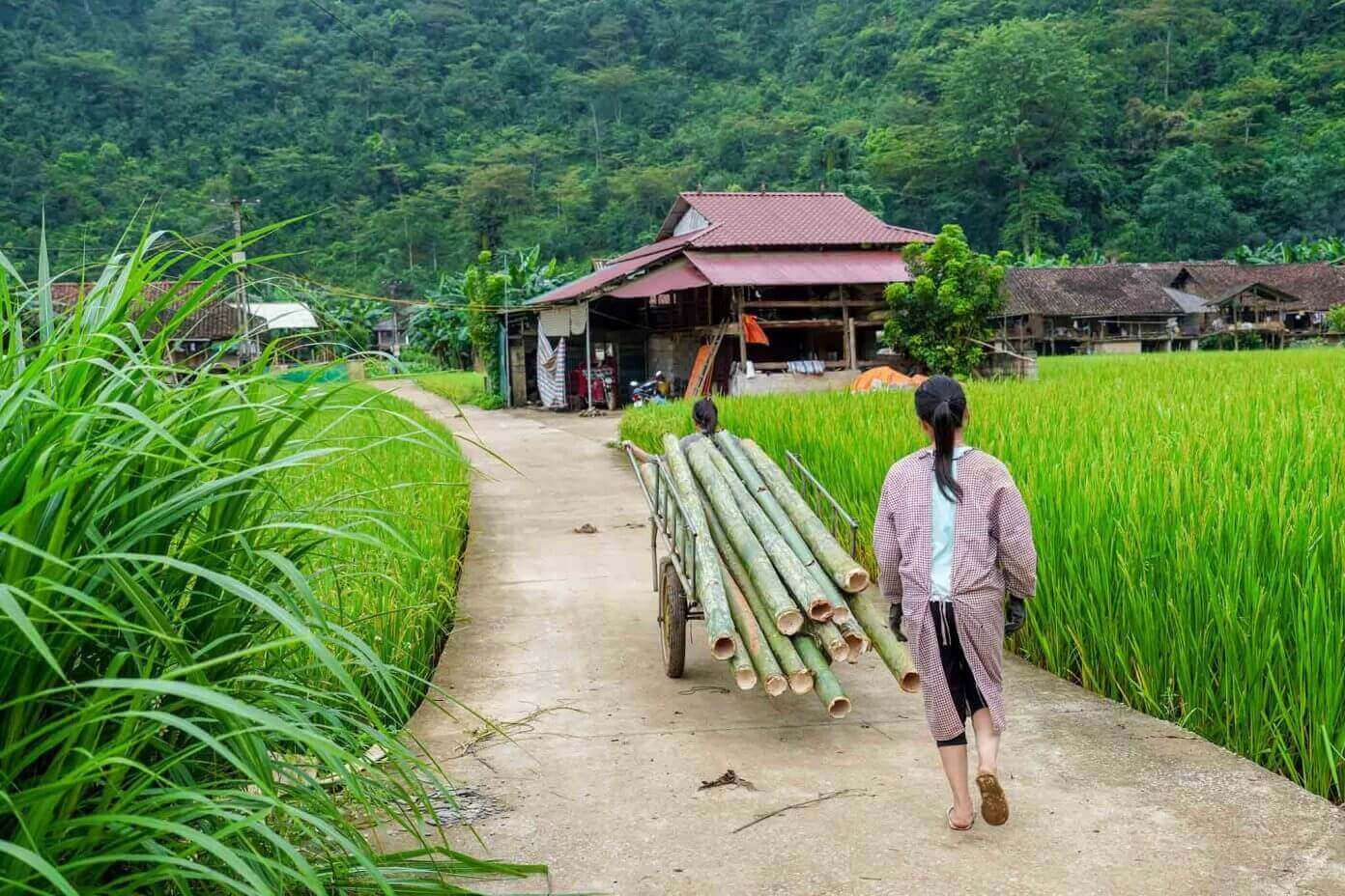 Người dân vác tre về làm hương tại làng Phia Thắp. Ảnh: Thanh Tính