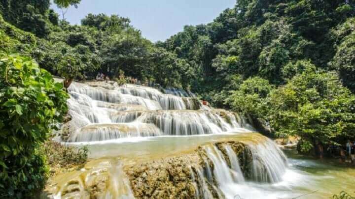 Thác dài hơn 100m,được chia thành 9 tầng vô cùng độc đáo. Bạn nên đến đây tham quan vào khoảng tháng 6 đến tháng 8,khi mà thời tiết nắng ấm để có thể ngâm mình dưới dòng nước mát lạnh.