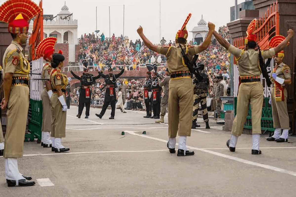 Tại biên giới Wagah của Pakistan và Attari của Ấn Độ có lễ hạ cờ vào mỗi buổi tối. Đám đông tụ tập để xem lính biên phòng hai bên có màn khiêu vũ,thách thức nhau