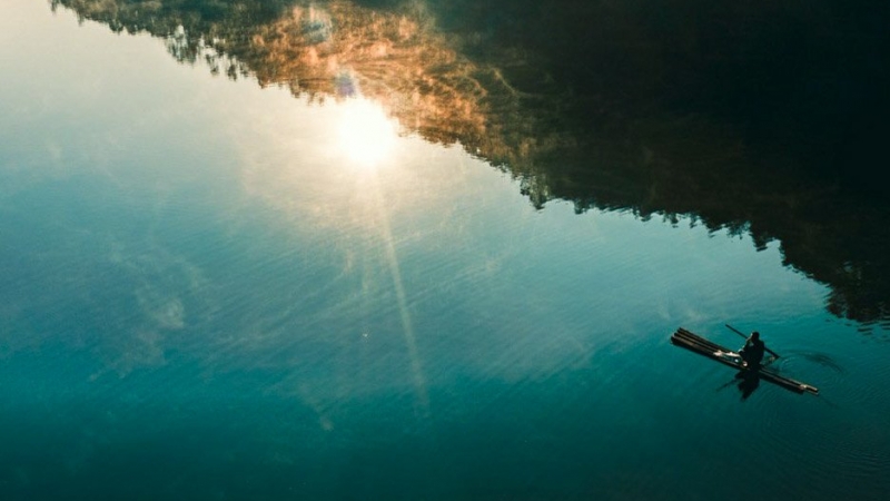 Hoàng hôn chiếu những tia nắng xuống mặt hồ màu xanh ngọc bích mờ ảo tạo nên những tia sáng lấp lánh. Cảm giác vô cùng tuyệt vời khi xuôi thuyền theo dòng nước trôi lững lờ xanh ngọc bích,hít hà cái không khí trong lành dễ chịu và tạm gác hết những muộn phiền âu lo của cuộc sống thường nhật.
