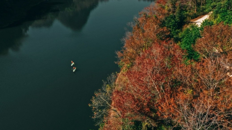 Thời điểm tới tham quan hồ lý tưởng nhất có lẽ là vào mùa đông. Lúc này,những tán phong rực đỏ khiến khung cảnh như một rừng phong ôn đới ở trời Âu.