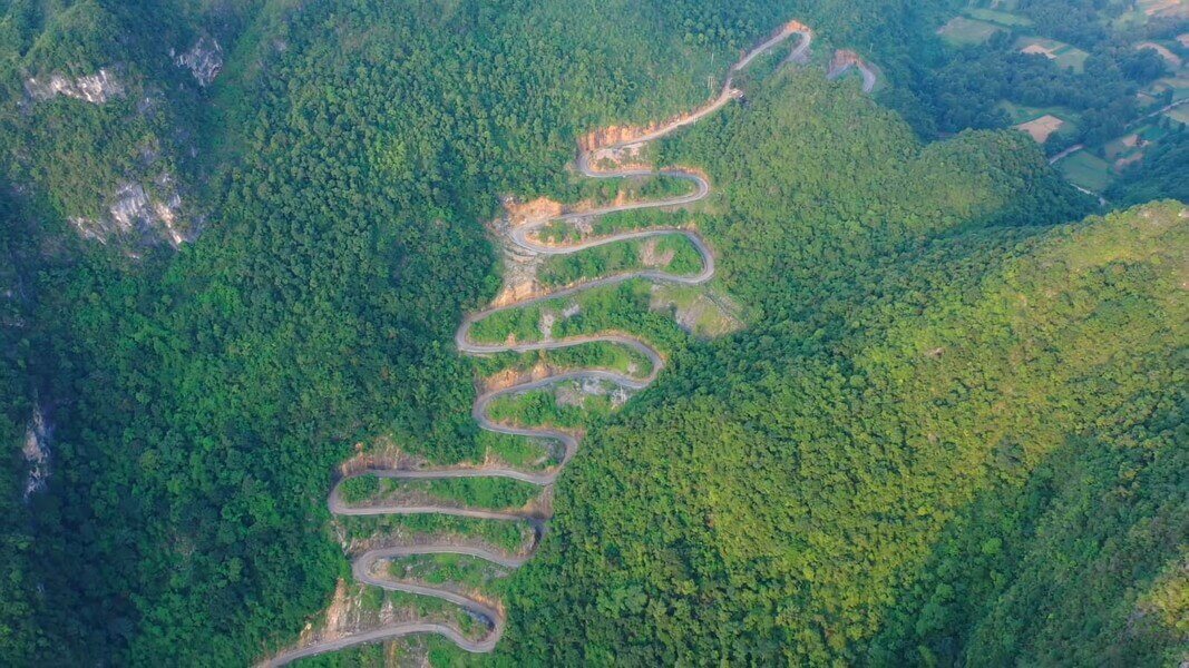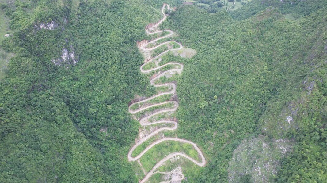 Đoạn đường đèo là dốc thẳng đứng. Sở dĩ xây dựng thành 14 tầng như vậy để tạo thành 14 khúc cua nhằm hạ độ cao và dốc để các phương tiện giao thông có thể đi lại dễ dàng hơn. Ảnh cắt từ clip
