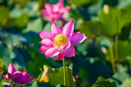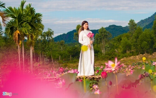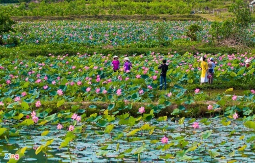 Từ tháng 5 đến tháng 8,đầm sen rộng khoảng 35 ha tại huyện Duy Xuyên,Quảng Nam nở rộ tạo nên một khung cảnh màu xanh - hồng lãng mạn,thu hút nhiều người đến chụp hình lưu niệm.