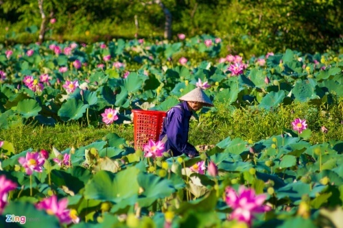 Đến chụp hình sen ở Trà Lý,du khách có thể mua những bó hoa sen,hạt sen tươi,sen sấy khô về làm quà.