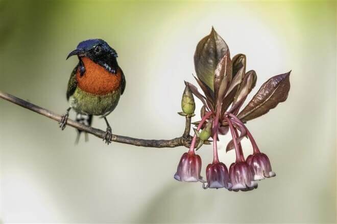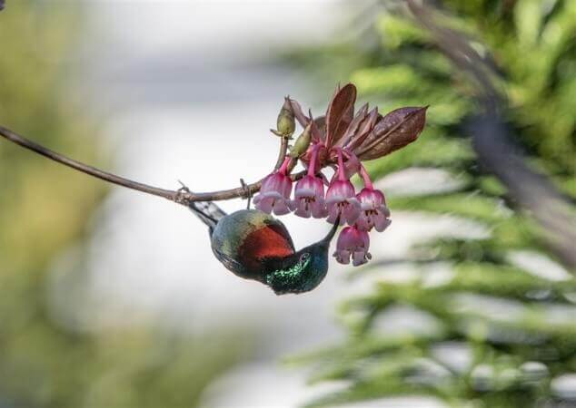 Khu tâm linh trên đỉnh Bà Nà là khu vực tập trung nhiều cây hoa Đào chuông nhất. Bên những mái chùa,nhành đào chuông khẽ nở,khung cảnh thanh tịnh,an yên ấy khiến người ta cứ muốn níu lại nơi này mãi. (Ảnh: NAG Phạm Phùng)