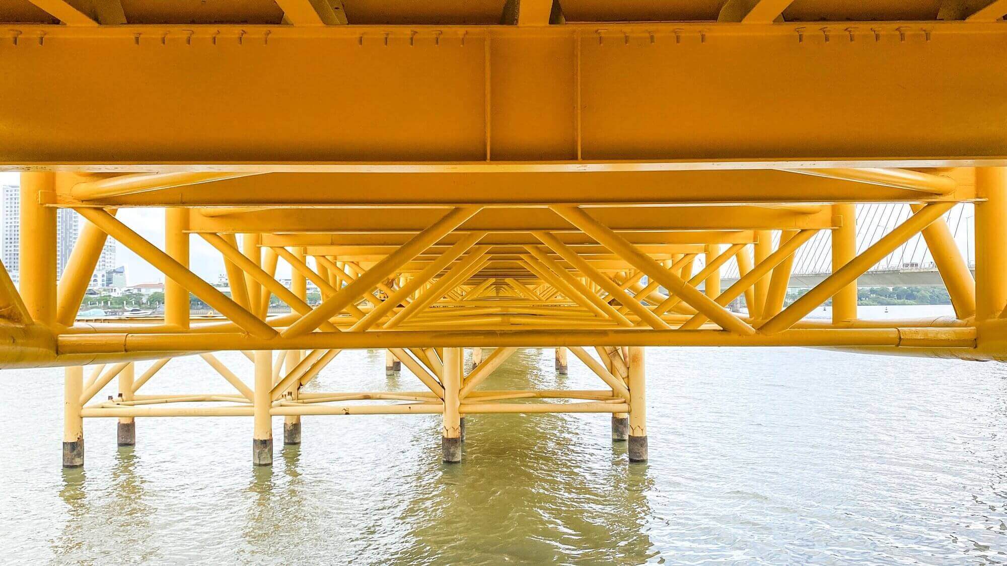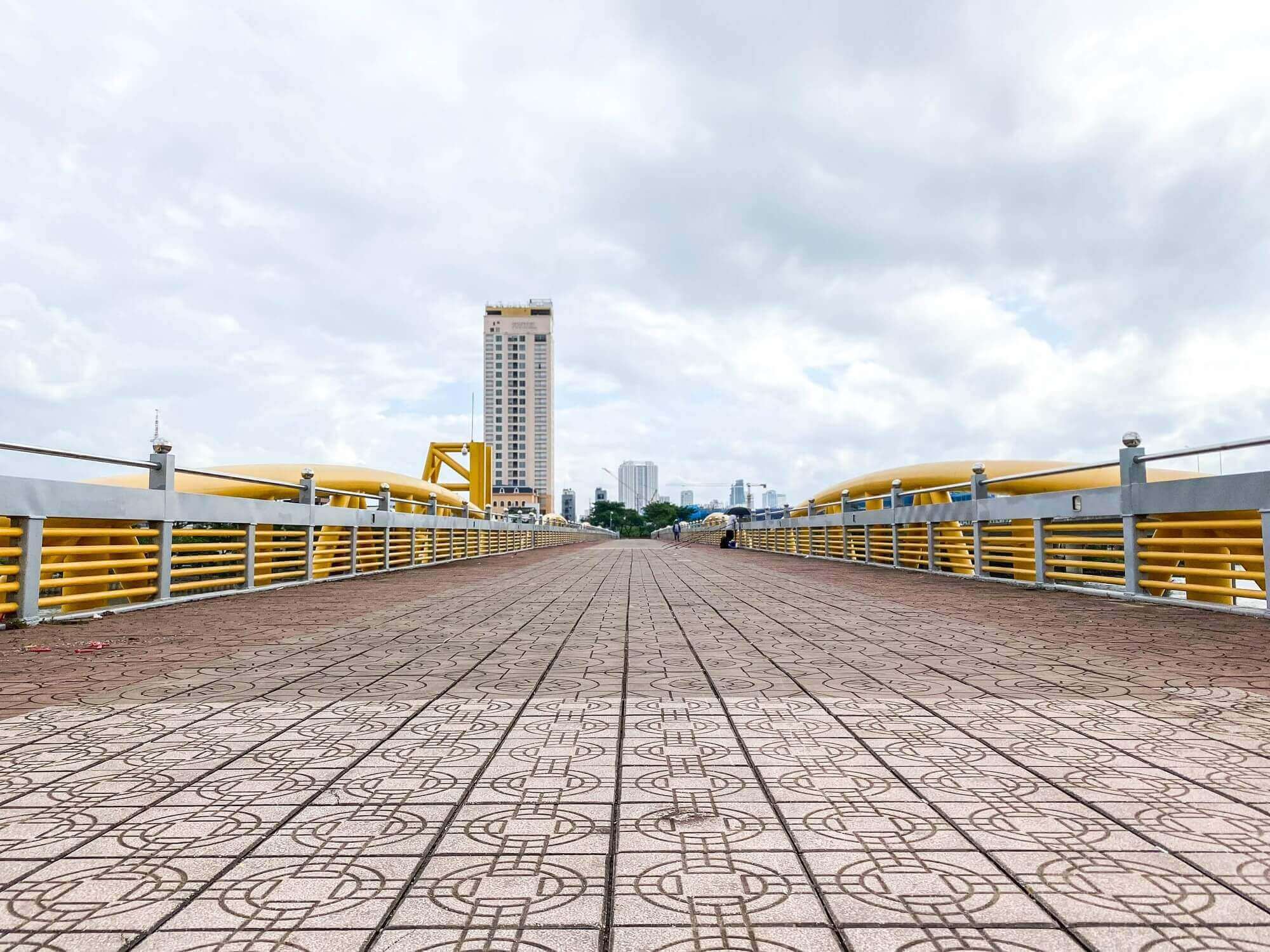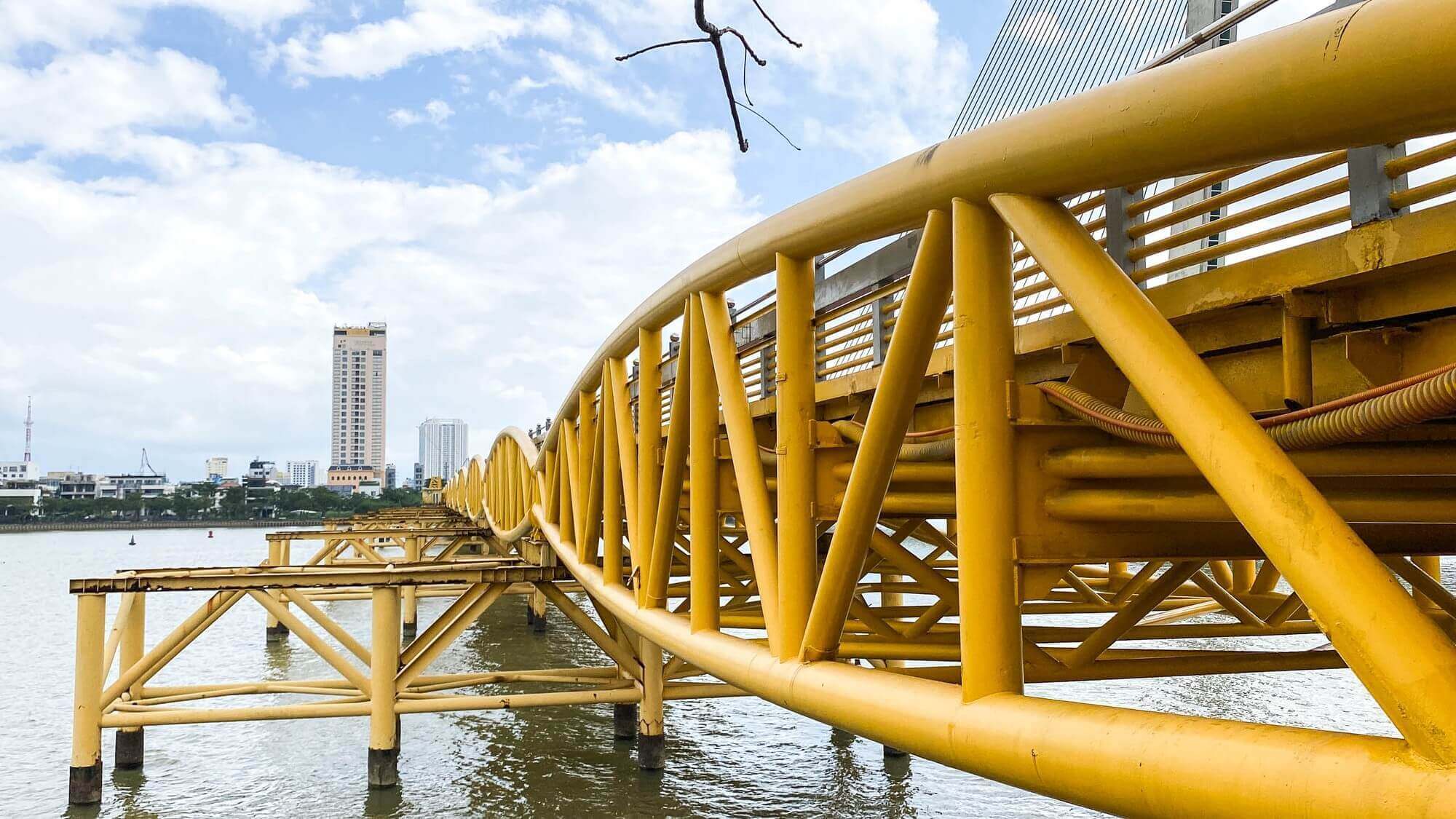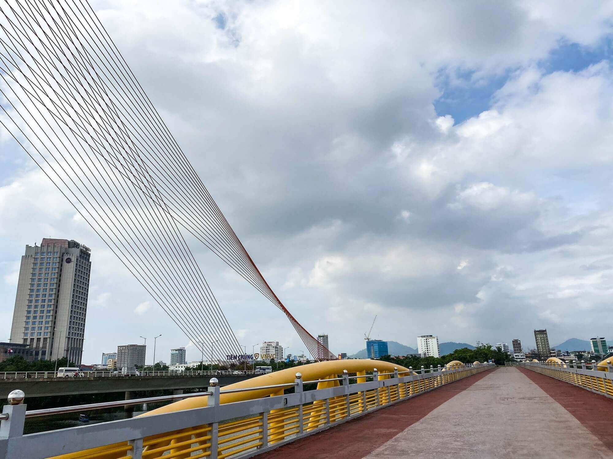 Cầu Vàng với sự nâng đỡ của những bàn tay khổng lồ đang được chia sẻ một cách chóng mặt trên những trang mạng xã hội, các cộng đồng du lịch, khiến nhiều người không khỏi ngỡ ngàng. Cầu Vàng (Golden Bridge), một công trình mới của Sun World Bà Nà Hills. Được khởi công xây dựng vào 07/2017 tới 04/2018 thì hoàn thành, thời gian gần đây đã đi vào hoạt động và đón những lượt khách tham quan du lịch Đà Nẵng đầu tiên. Sở hữu thiết kế vô cùng độc đáo và mới lạ, chưa từng có ở Việt Nam, cây câu được xây dựng tại độ cao hơn 1.400 mét so với mực nước biển, tổng chiều dài vào khoảng 150 mét, với 8 nhịp cầu, nhịp lớn nhất là 21.2 mét. Mặt cầu được làm bằng gỗ kiềng rộng 3 mét, dày 5 cm, dọc hai bên lối đi được trồng rất nhiều hoa Nữ hoàng Xanh, bên trên là phần lan can được làm bằng inox mạ vàng. Có thể thấy cây cầu này được thiết kế và tạo hình giống với hình tượng một người phụ nữ đang dùng đôi bàn tay của mình để nâng đỡ một dải lụa vàng vắt ngang. Với hình ảnh độc đáo, cầu vàng ở Bà Nà Hills đã khiến không ít người phải ngỡ ngàng và nể phục sự sáng tạo của những người thiết kế và xây dựng công trình này. Không chỉ được chiêm ngưỡng vẻ đẹp của công trình độc đáo này, tới đây bạn sẽ được thỏa sức ngắm nhìn cảnh đẹp hùng vĩ đầy ngoạn mục của núi rừng xung quanh. Cảm giác đi dạo trên những tầng mây lơ lừng, ngắm nhìn cảnh đẹp bên dưới sẽ là trải nghiệm vô cùng tuyệt vời đối với nhiều du khách. Rất nhiều những tấm hình đẹp đã được du khách tới đây chụp lại, nhiều người xem cứ ngỡ đây là một địa điểm du lịch nào đó của nước ngoài. Nhưng khi biết đó là cầu Vàng trên đỉnh Bà Nà mọi người vô cùng ngạc nhiên và thích thú muốn tìm đến ngay để chiêm ngưỡng cảnh đẹp này. Có thể thấy Đà Nẵng không chỉ sở hữu những cảnh quan thiên nhiên kỳ thú mà những công trình được xây dựng từ chính khối óc và bàn tay con người cũng được thể hiện tại thành phố này một cách vô cùng độc đáo, trong đó không thể không nhắc tới cầu Vàng ở Đà Nẵng một công trình mang tính nghệ thuật cao.