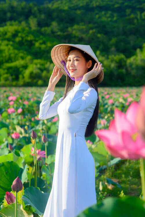 Sắc sen thường gắn liền với tà áo dài trắng,chiếc nón lá.