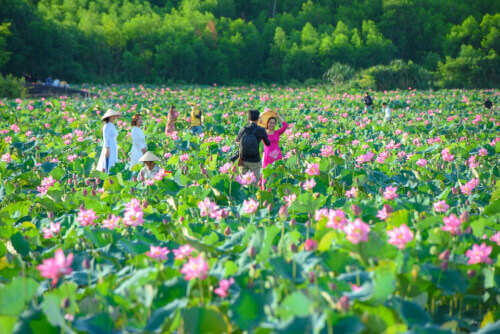 Cánh đồng sen bạt ngàn nên khi các bạn đến đây thì chọn cho mình một góc để check-in.