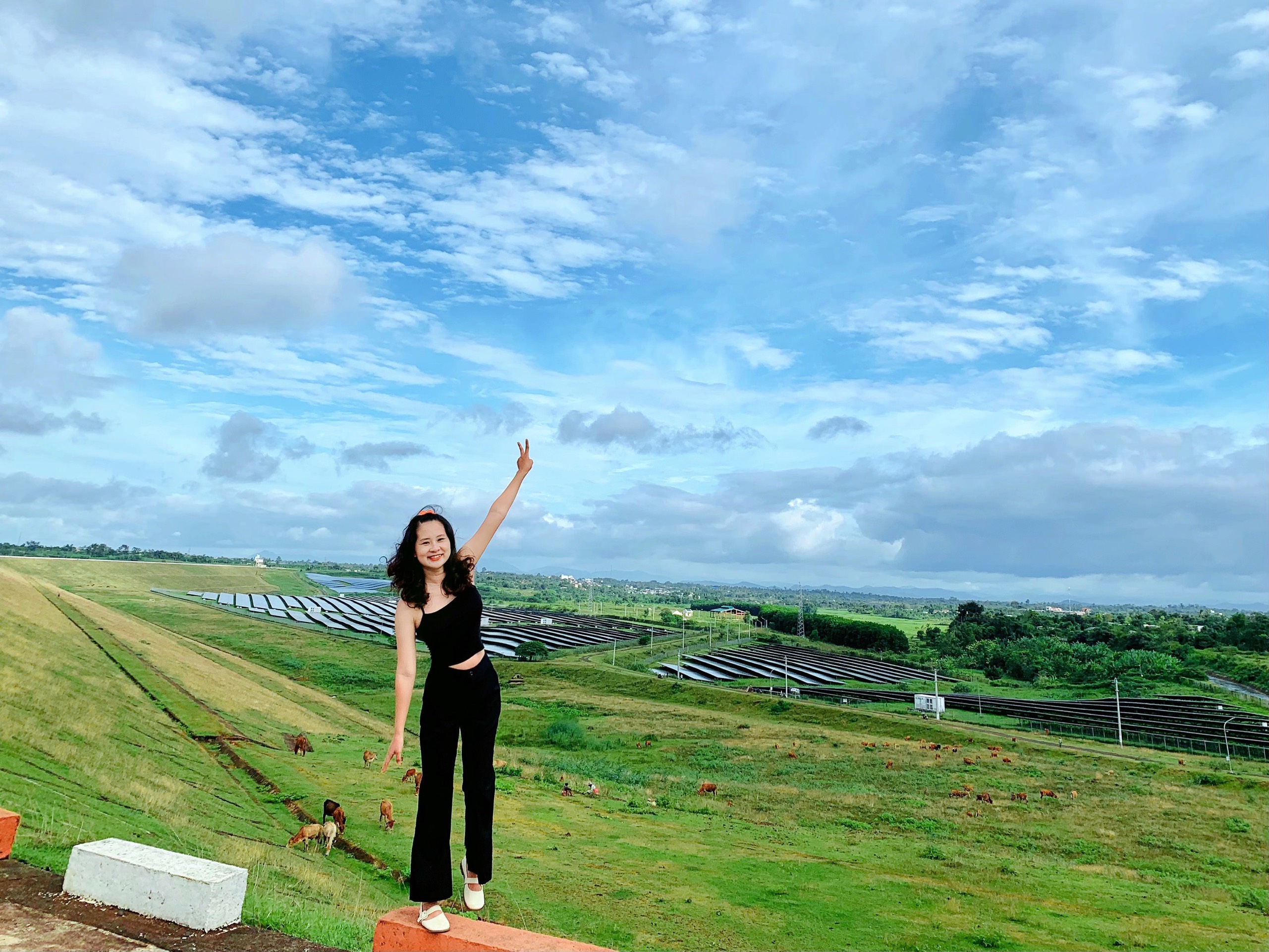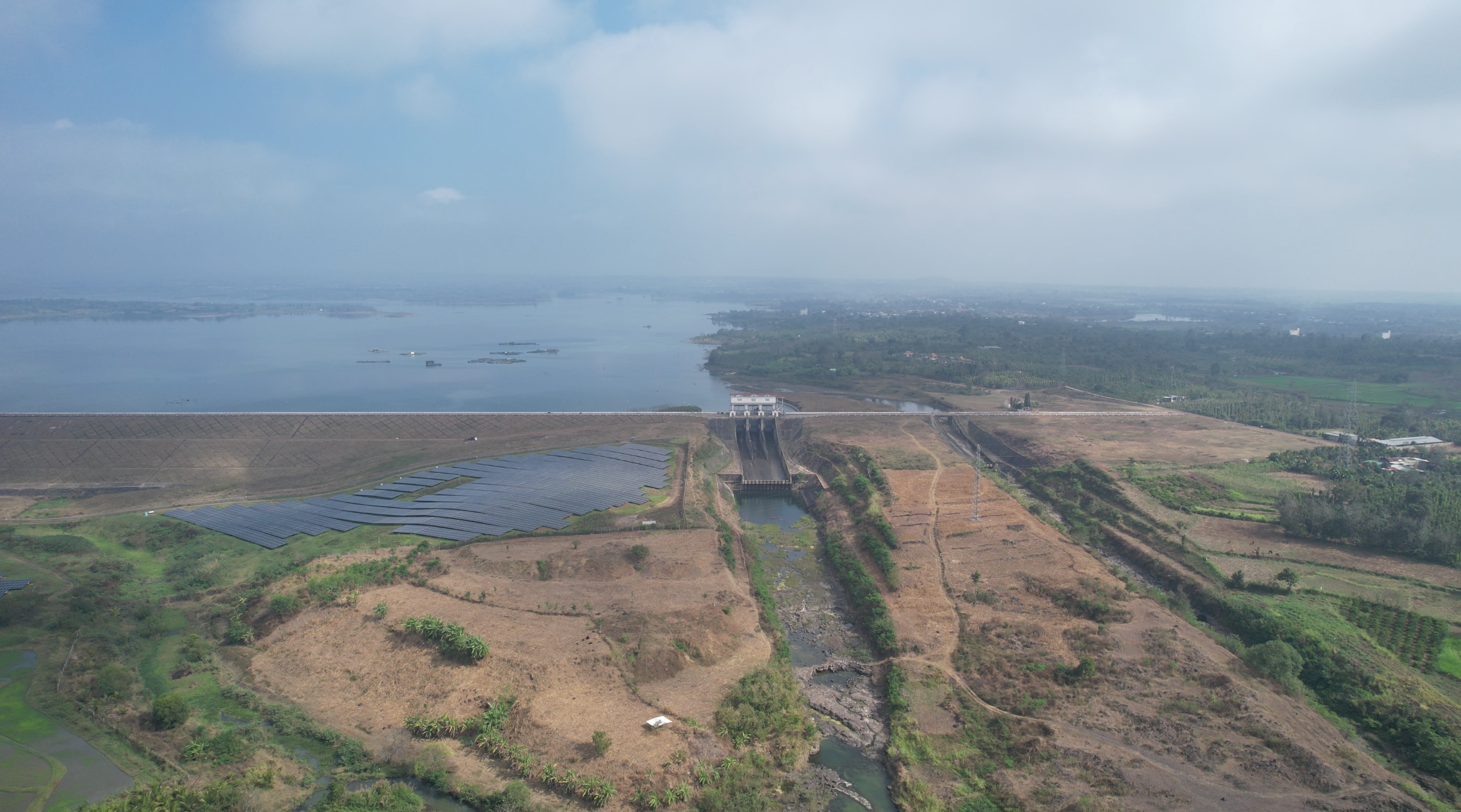 Dọc theo đường đập,nhìn ra hướng quốc lộ 26,du khách dễ dàng ngắm nhìn trang trại điện mặt trời.