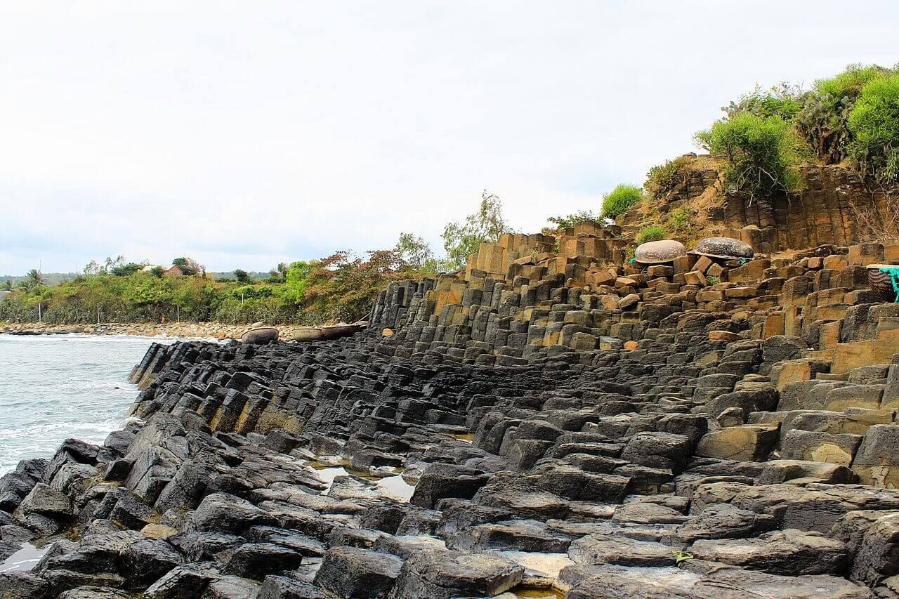Ghềnh Đá Đĩa là địa danh thuộc xã An Ninh Đông, huyện Tuy An, tỉnh Phú Yên. Nơi đây độc đáo với cảnh quan là các khối đá ở đây hoặc hình tròn, hoặc vuông, đã tạo nên một khung cảnh tự nhiên mà như có chủ ý sắp đặt của tạo hóa. Dựa trên nhiều cuộc khảo sát và nghiên cứu, người ta cho rằng khoảng 200 triệu năm trước, trong quá trình hoạt động của núi lửa ở vùng cao nguyên Vân Hòa, nham thạch phun trào theo dòng chảy dẫn ra biển. Khi đụng phải nước biển lạnh, cộng với hiện tượng di ứng lực khiến các khối nham thạch bị đông cứng rạn nứt phần lớn theo mạch dọc tạo nên những khối đá với hình thù khác nhau. Từ trên cao, ghềnh đá như một tổ ong khổng lồ, đen bóng và gồ ghề. Hoặc có thể ví như những chiếc đĩa, lổm nhổm, xếp chồng lên nhau trong lò gạch. Nơi đây được thiên nhiên ưu ái ban cho vẻ đẹp nên thơ trữ tình, hài hòa non nước, đẹp như một bức tranh thủy mặc. Ghềnh Đá Đãi một kỳ thú tuyệt đẹp là nơi thu hút và níu chân du khách du lịch. Từ thành phố Tuy Hòa, bạn lái xe 30km về phía Bắc, đến thị trấn Chí Thạnh bạn rẽ phải theo phía Đông, đi thêm 15km nữa là tới ghềnh Đá Đĩa. Còn nếu bạn muốn tận hưởng những làn gió biển tươi mát, khung cảnh bình dị của vùng biển miền Trung thì con đường ven biển Tuy Hòa dài chừng 35km sẽ là lựa chọn tuyệt vời dành cho bạn. Từ thành phố Tuy Hòa, bạn lái xe 30km về phía Bắc, đến thị trấn Chí Thạnh bạn rẽ phải theo phía Đông, đi thêm 15km nữa là tới ghềnh Đá Đĩa. Còn nếu bạn muốn tận hưởng những làn gió biển tươi mát, khung cảnh bình dị của vùng biển miền Trung thì con đường ven biển Tuy Hòa dài chừng 35km sẽ là lựa chọn tuyệt vời dành cho bạn. Hằng năm vào đầu tháng 2 và tháng 8 âm lịch thường diễn ra các lễ hội cầu ngư. Du khách đến đây vào dịp này sẽ có cơ hội ngắm cảnh ghềnh Đá Đĩa và tham gia vào các màn lễ hội đặc sắc. Phải đến tận nơi, đứng trên bờ biển tận mắt chứng kiến, bạn mới có thể thực sự tin được sự kì diệu mà thiên nhiên mang lại cho nơi đây. Những viên đá với hình thù khác nhau, nằm lộn xộn như chồng chén, đĩa trong các lò gốm sứ. Sóng biển nơi đây cũng mạnh lạ kì. Ngày đêm vỗ bờ, tạo nên bọt trắng xóa cả một vùng. Dọc theo ghềnh Đá Đĩa, thi thoảng bạn sẽ bắt gặp vài chỗ trũng. Mỗi khi có mưa cùng cùng với nước biển đọng lại. Nơi đây bỗng trở thành như những chiếc hồ nhân tạo. Bạn có thể tựa lưng vào những phiến đá, thả mình trong nước biển rồi thưởng thức không khí trong lành, ngắm nhìn vài chú cua, sao biển hay sứa biển bị mắc kẹt. Hay xuống tận sau dưới mép ghềnh là một chiếc hang lớn sâu vào trong núi. Tương truyền đây là hậu quả do chiến tranh để lại. Trưa đến, nếu bạn muốn tìm nơi nào đó để nghỉ ngơi thì bãi Bàng là một địa điểm lý tưởng. Dưới tán bàng vươn rộng, vừa thưởng thức hải sản tươi ngon, vừa tận hưởng cái hương vị đặc trưng của biển Tuy Hòa. Cách đó không xa là hải đăng Gành đèn. Từ đây bạn có thể ngắm nhìn toàn cảnh biển cũng như ghềnh Đá Đĩa Phú Yên. Mặc cho gió vẫn thổi, sóng vẫn vỗ về, thậm chí cả bom đạn, ghềnh Đá Đĩa vẫn đứng đó hiên ngang, huyền bí. Nếu có cơ hội đến Phú Yên, xin hãy ghé thăm Đá Đĩa, nghe gió kể chuyện, nghe sóng làm thơ. So với Nha Trang hay một vài địa điểm du lịch nổi tiếng khác thì tại Ghềnh Đá Đĩa có giá thành rẻ và bình dân hơn rất nhiều. Bạn có thể dễ dàng thoải mái khi chọn lựa một nhà nghỉ hay khách sạn phù hợp với túi tiền của mình. Bạn vừa có thể nghỉ ngơi thư giãn lại vừa có thể ngắm phong cảnh tuyệt sắc nơi đây. Một số khách sạn bạn có thể lựa chọn như: Saigon Phú Yên hotel với giá 800.000đồng/đêm; Anh Tuấn 2 hotel với giá 550.000 đồng/đêm. Nếu là người yêu thích thiên nhiên hoang dã bạn có thể chọn cho mình những khoảng không thư giãn để cắm trại, ngủ lều tại bãi Bàng gần Ghềnh Đá để tận hưởng một đêm tuyệt vời. Mảnh đất Phú Yên đầy nắng và gió đã được thiên nhiên hào phóng ban tặng cho những danh lam thắng cảnh và những kỳ quan thiên nhiên kỳ thú mê hoặc lòng người – Ghềnh Đá Đĩa Phú Yên là một trong những kỳ quan như thế. Bàn tay tạo hóa tài hoa đã tạo nên một khung cảnh tự nhiên đẹp hoang sơ, thu hút khách du lịch muôn phương tìm về để chiêm ngưỡng vẻ đẹp và khâm phục trước vẻ đẹp nơi đây. Nếu bạn thực sự là người yêu cái đẹp thuần khiết nhất của thiên nhiên thì không nên bỏ qua điểm đến Ghềnh Đá trong cuốn cẩm nang du lịch của mình.
