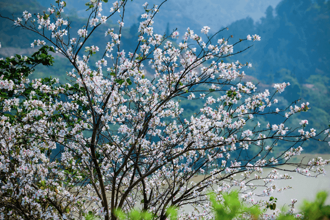 Hoa ban nở trắng xóa sườn đồi Điện Biên.