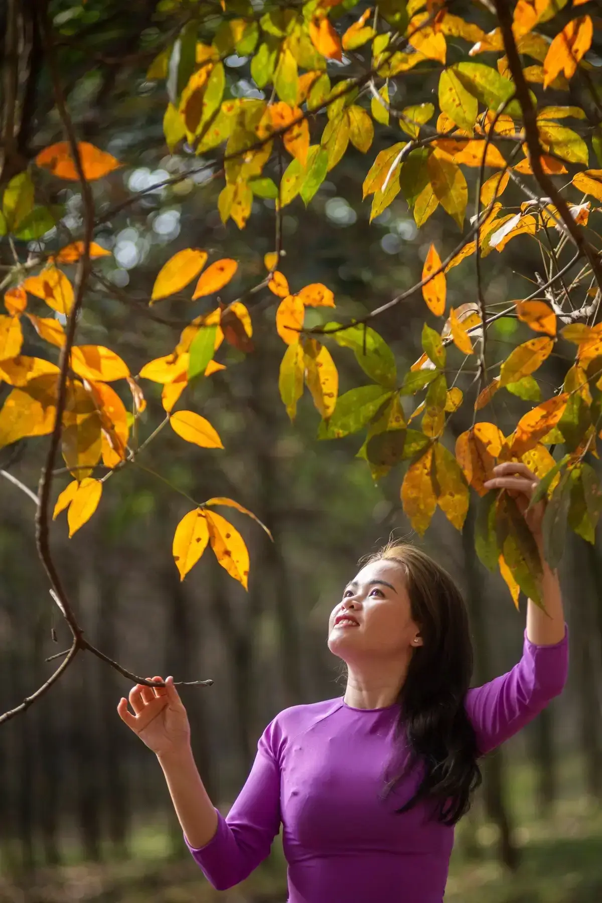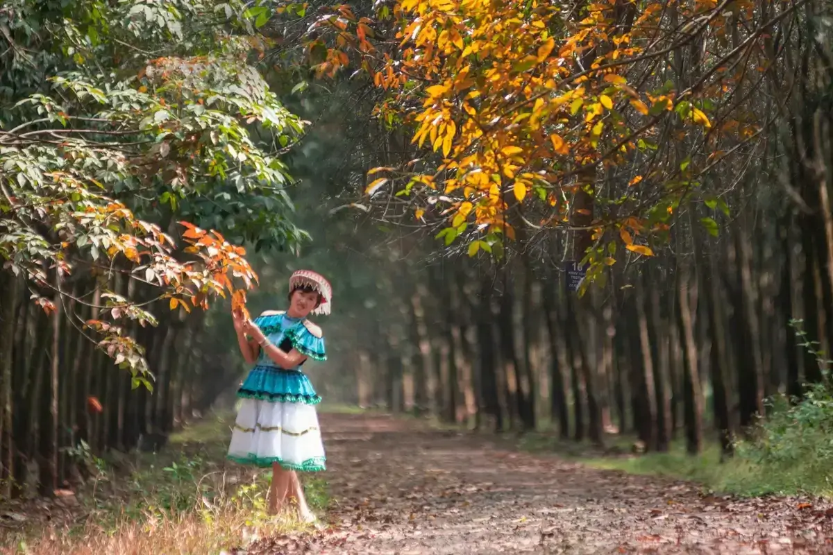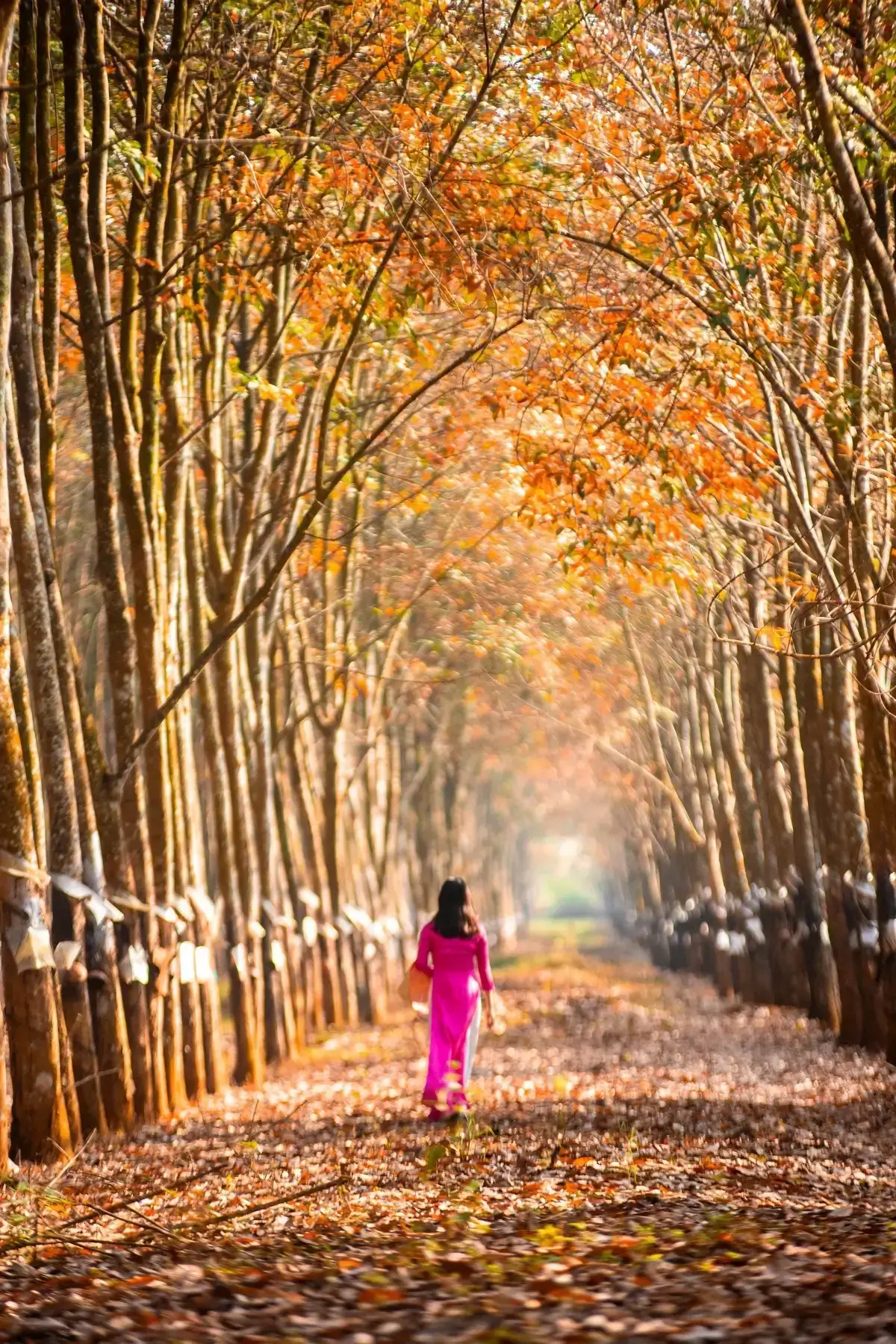 Nắng vàng,mùa lá vàng rất thích hợp để nhiều thiếu nữ chọn rừng cao su mùa này để có cho mình 1 bộ ảnh ưng ý