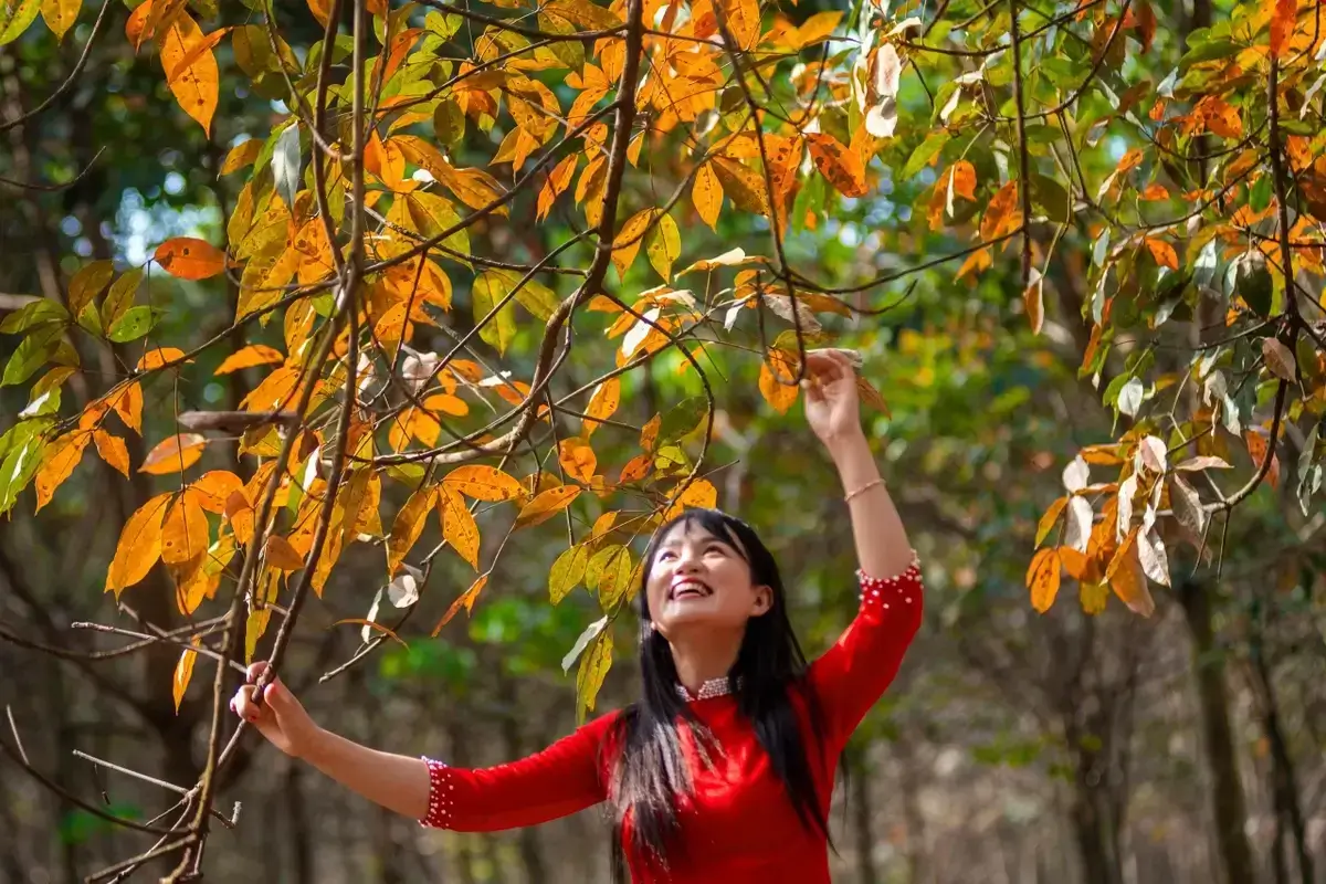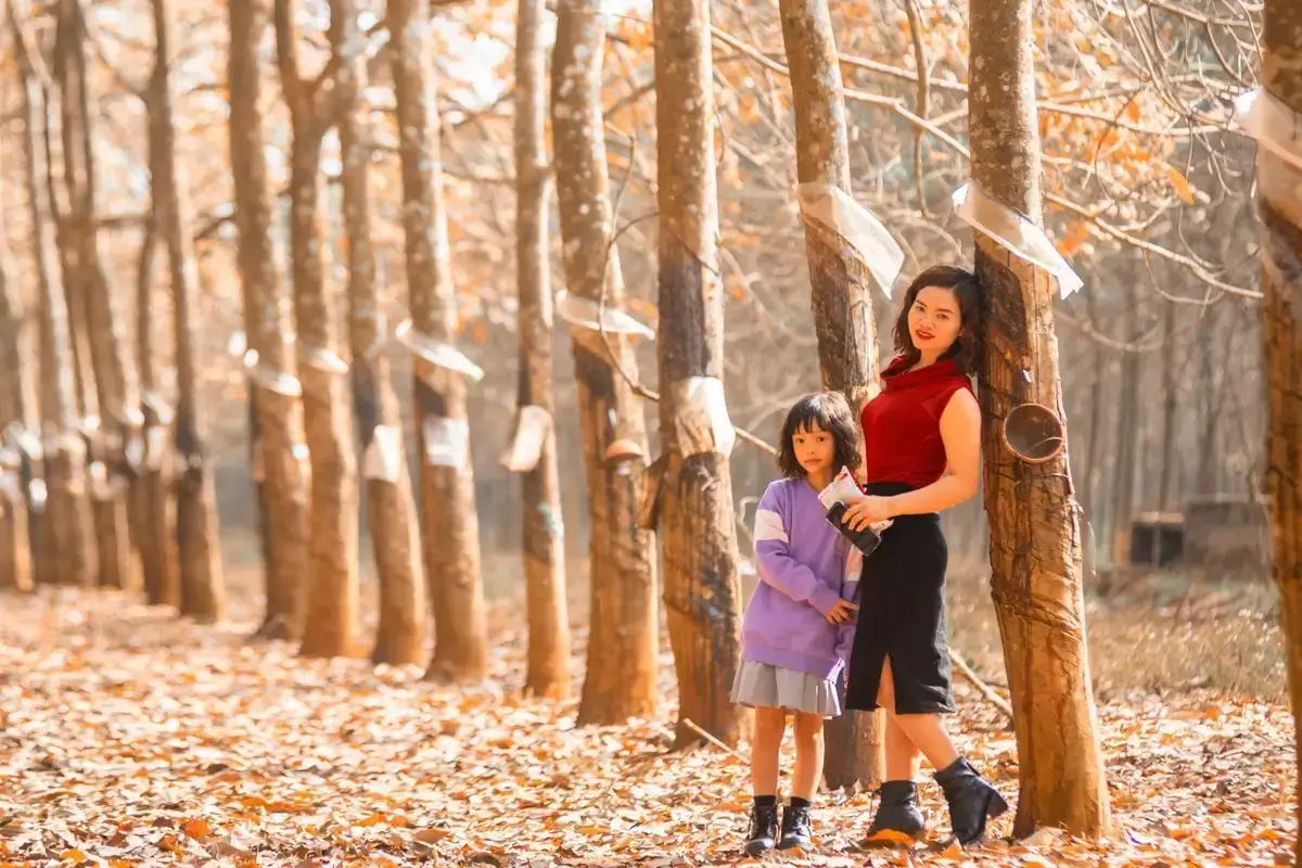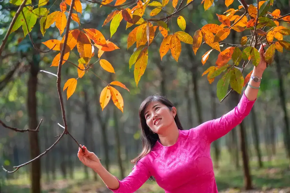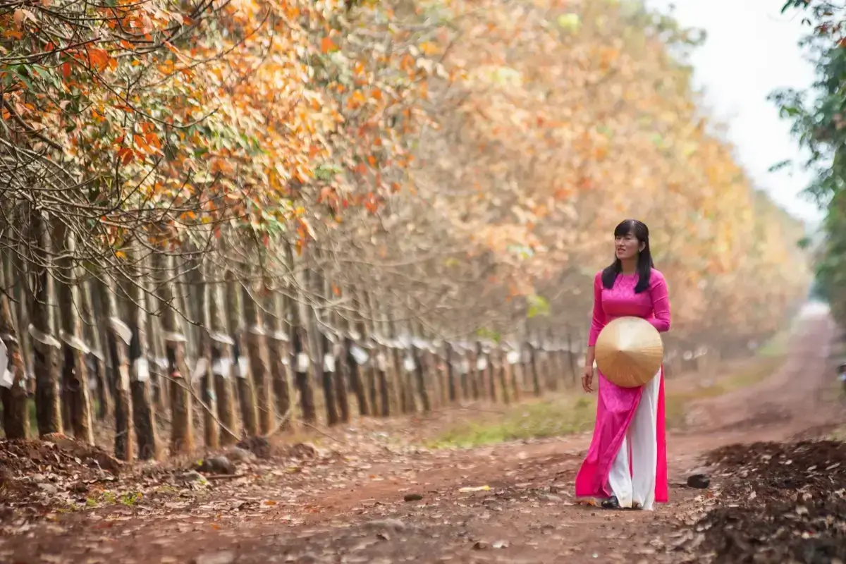 Nắng vàng,mùa lá vàng rất thích hợp để nhiều thiếu nữ chọn rừng cao su mùa này để có cho mình 1 bộ ảnh ưng ý