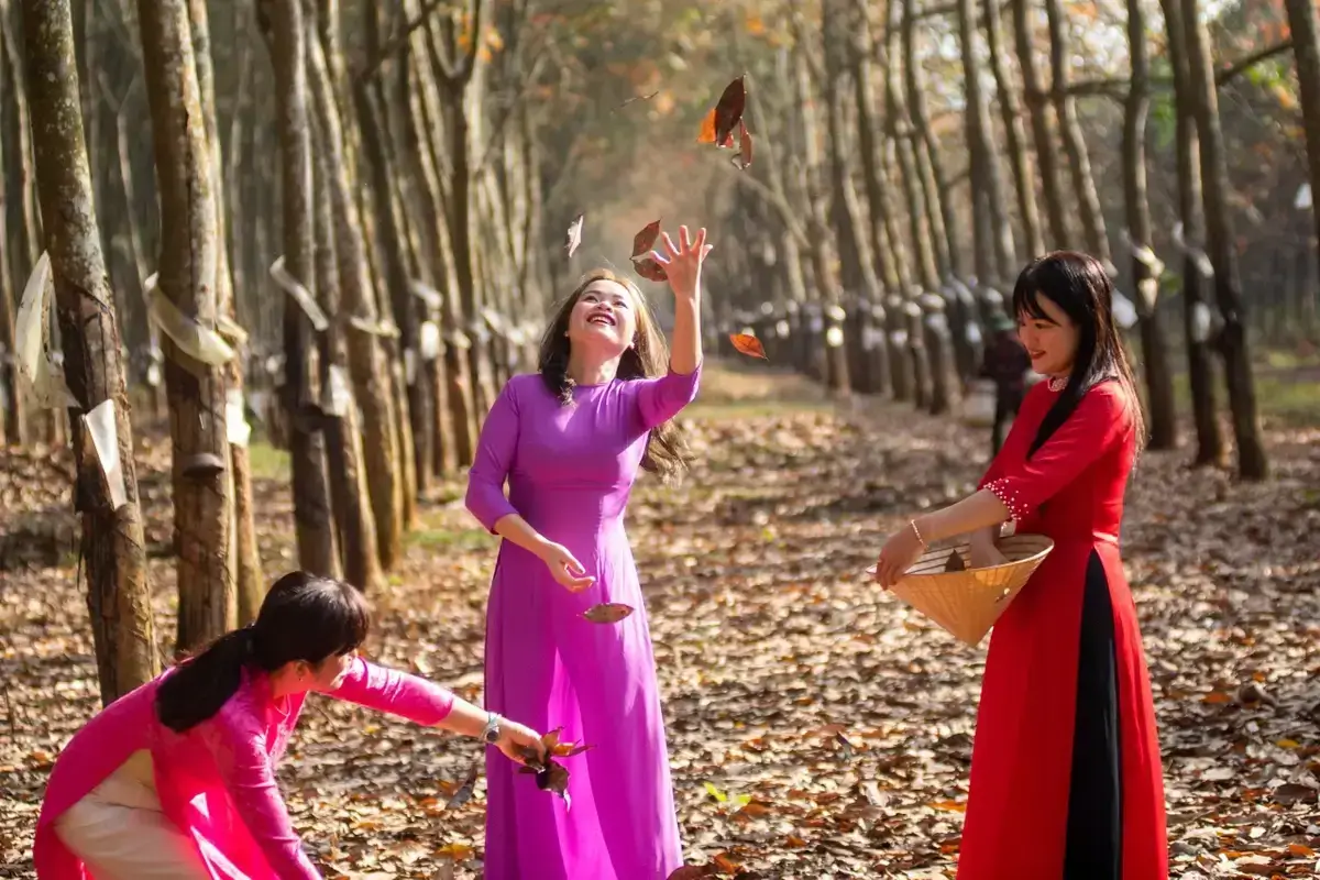Nhiều cô gái đã đầu tư rất kỹ để có bộ ảnh đẹp bên rừng cao su thay lá