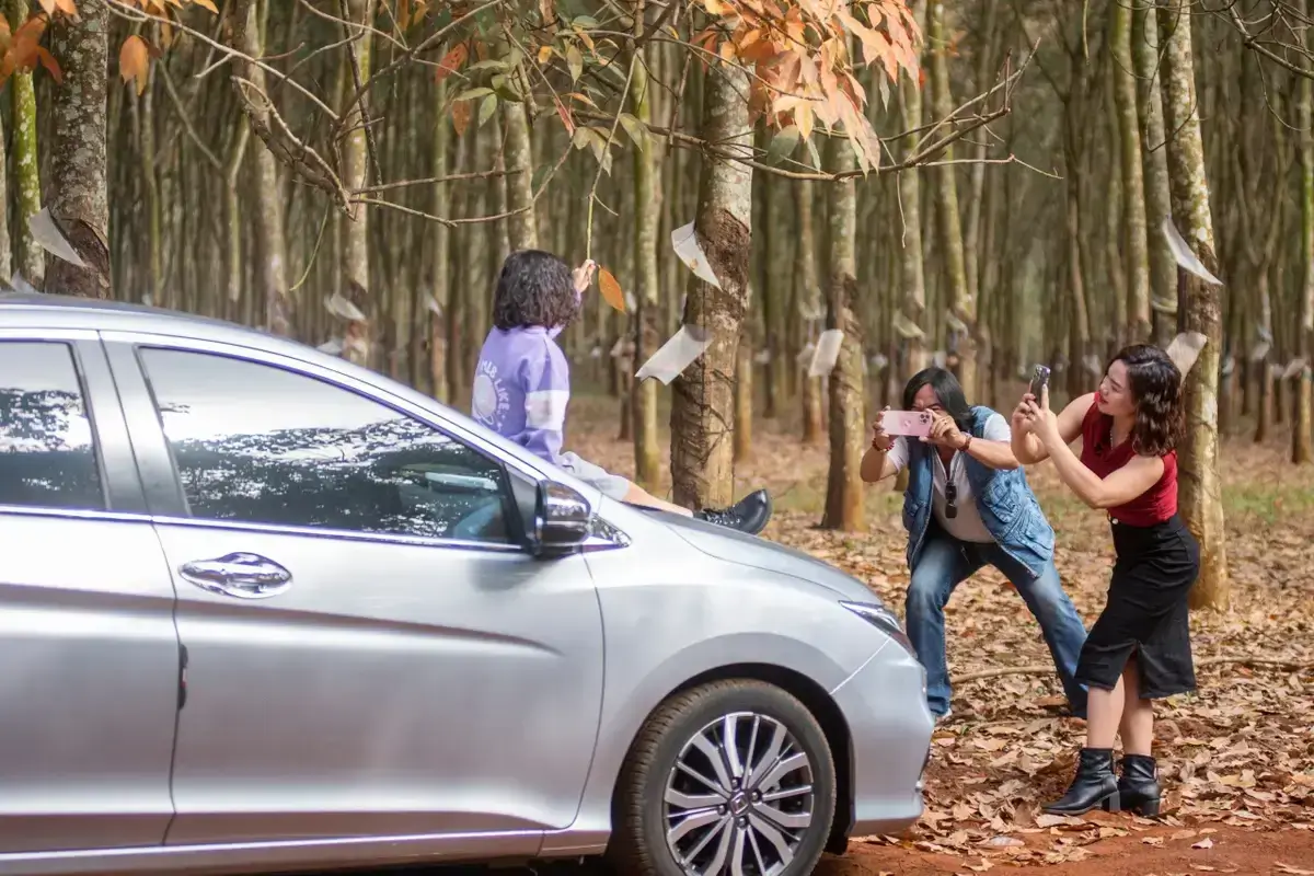 Trong 3 tháng "nghỉ ngơi",rừng cao su đón nhiều người ghé thăm,chụp ảnh