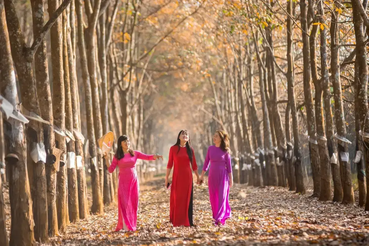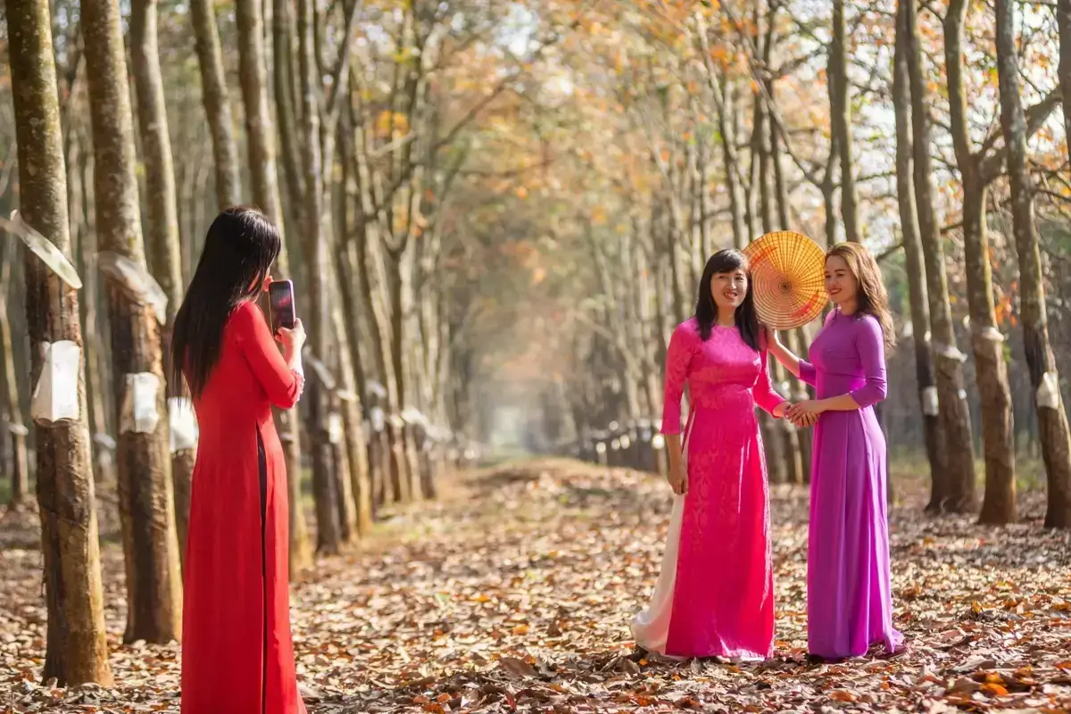 Mùa cao su thay lá được xem là mùa đẹp nhất trong năm ở vùng đất miền Đông. Mùa này,rất nhiều người đến với những hàng cao su thẳng tắp để chụp ảnh.