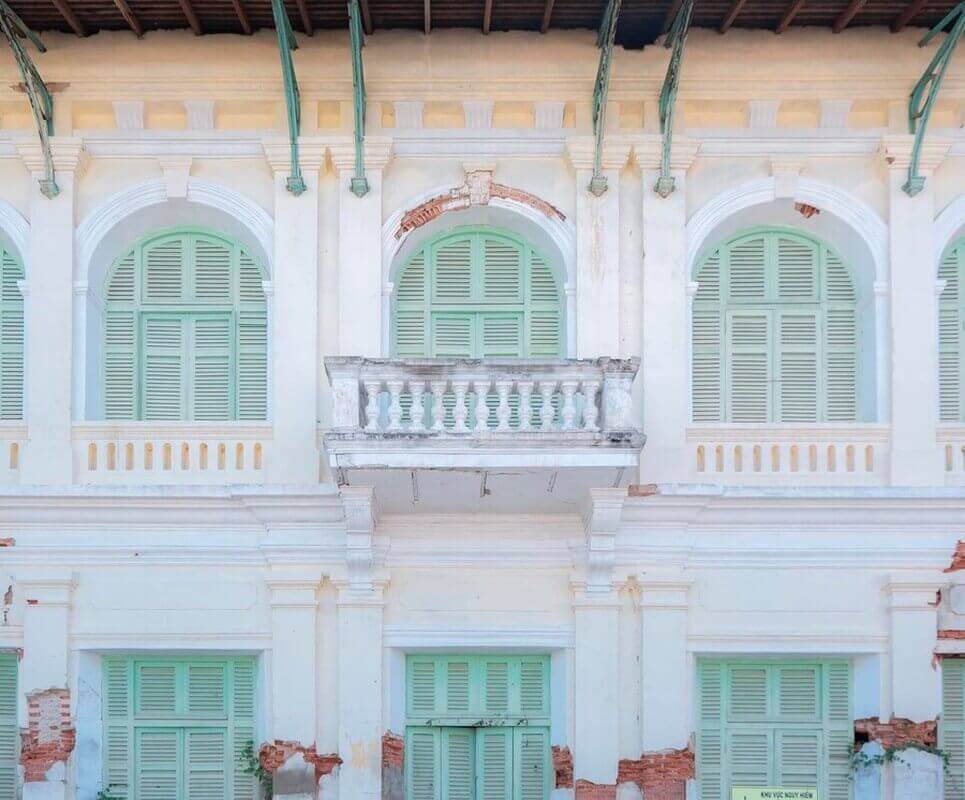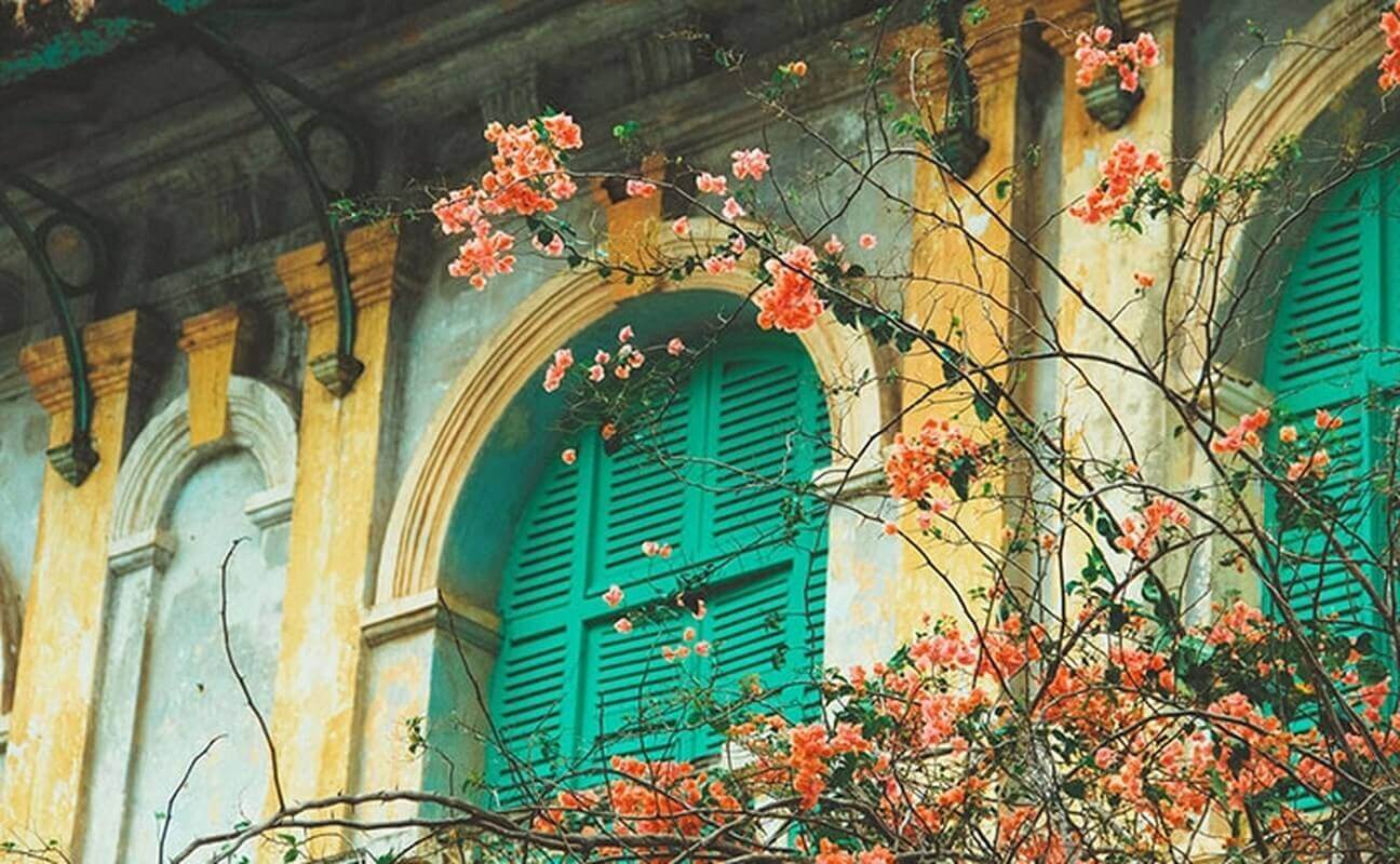 Mang vẻ đẹp mộc mạc và cổ kính,từng ô cửa sổ màu xanh và mái ngói rêu phong,màu gạch trắng ngà điểm xuyết phong vị của nắng,gió khiến tòa nhà càng có sức quyến rũ đặc biệt. Ảnh: Nguoigocong