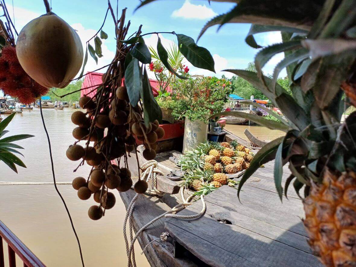 Bán gì treo nấy là hình ảnh quen thuộc tại những chiếc ghe,xuồng ở chợ nổi.