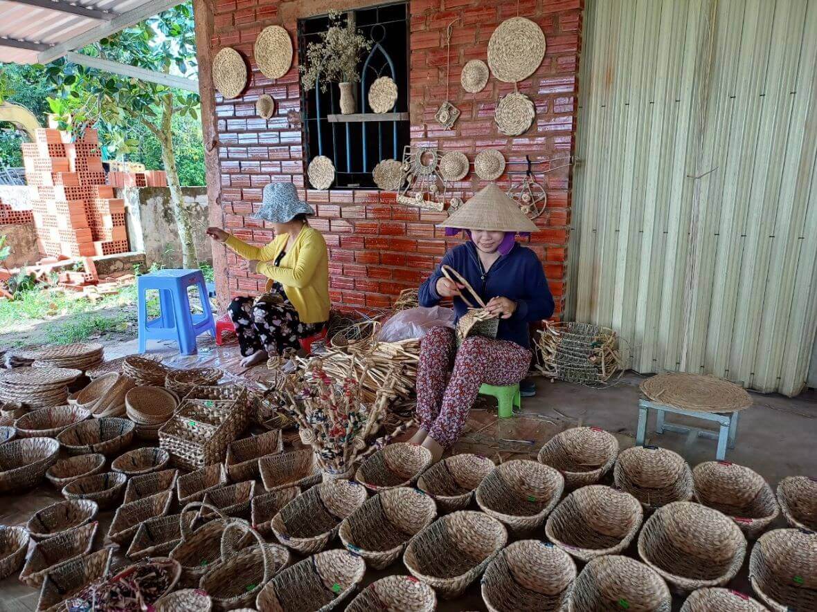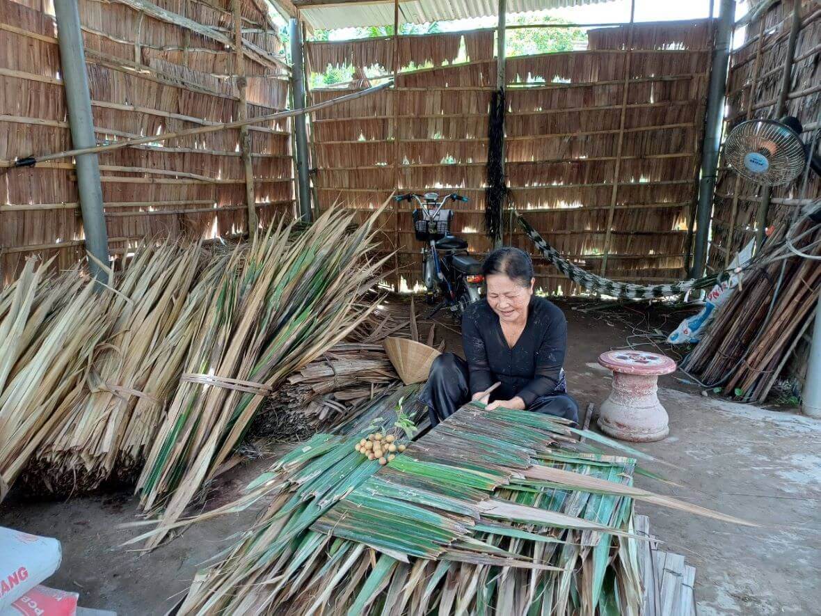 Tham quan nhà một người dân đan chằm lá dừa nước.