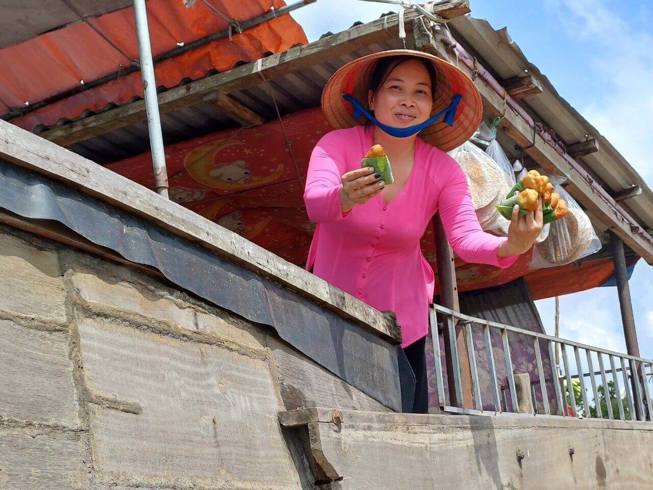 Những món ăn đặc trưng cũng được người dân mời chào khi có du khách ghé thăm chợ nổi.