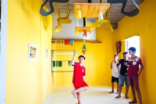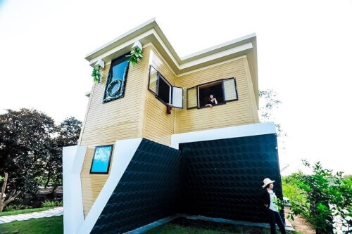 Nhà lộn ngược được xây dựng năm 2019 và có tổng chi phí gần 800 triệu đồng. Căn nhà có sức chứa hơn 50 người.