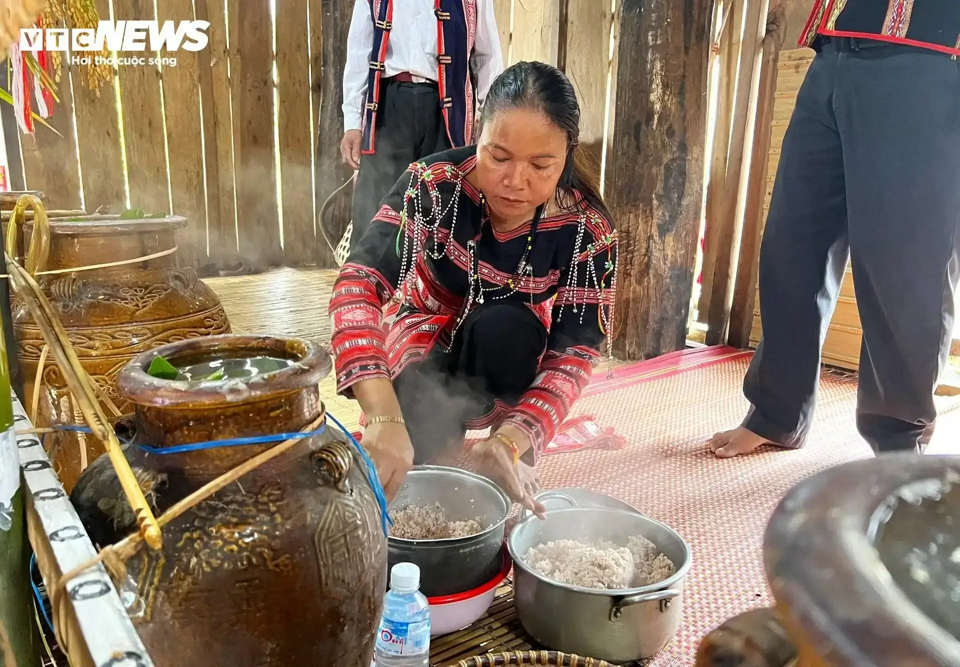 Già làng phân công nhiệm vụ mỗi người một việc để Lễ hội diễn ra chu đáo. Phụ nữ thì cột ghè rượu,khiêng nước,nấu ăn...