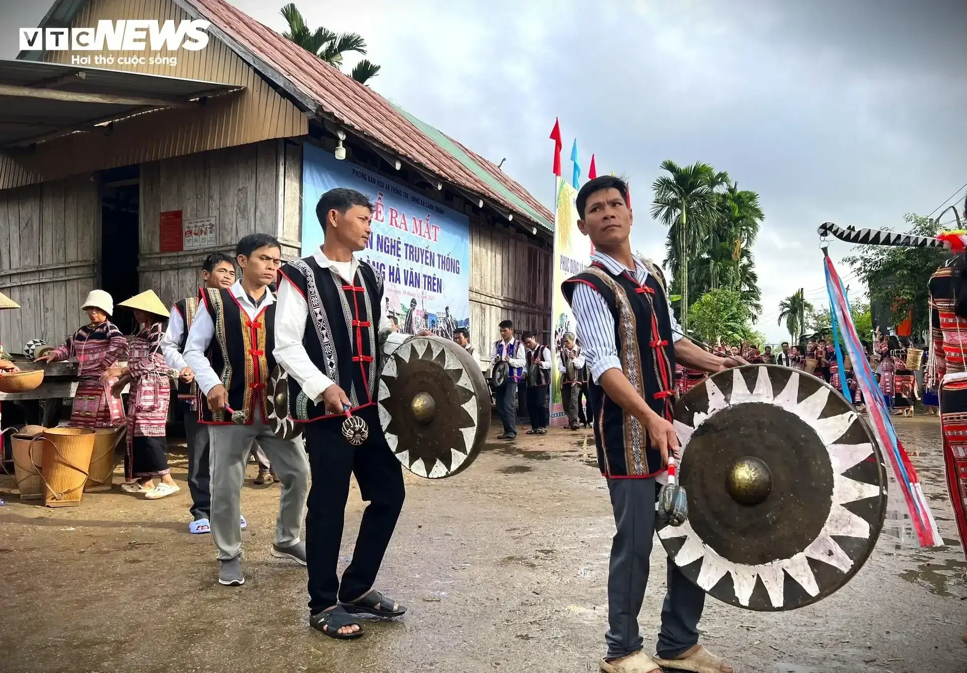 Những ngày này,buôn Hà Văn Trên vang vọng tiếng cồng chiêng xen lẫn tiếng cười vui của các cụ già,trẻ nhỏ,nam thanh,nữ tú... người Ba Na. Điều này chứng tỏ năm vừa qua,buôn đã có được một mùa bội thu.