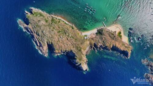Nằm cách làng chài Nhơn Hải chưa đầy 1km,nhìn từ trên cao cù lao Hòn Khô (TP Quy Nhơn,Bình Định) trông như một con thú đang co chân chạy tốc độ cao.